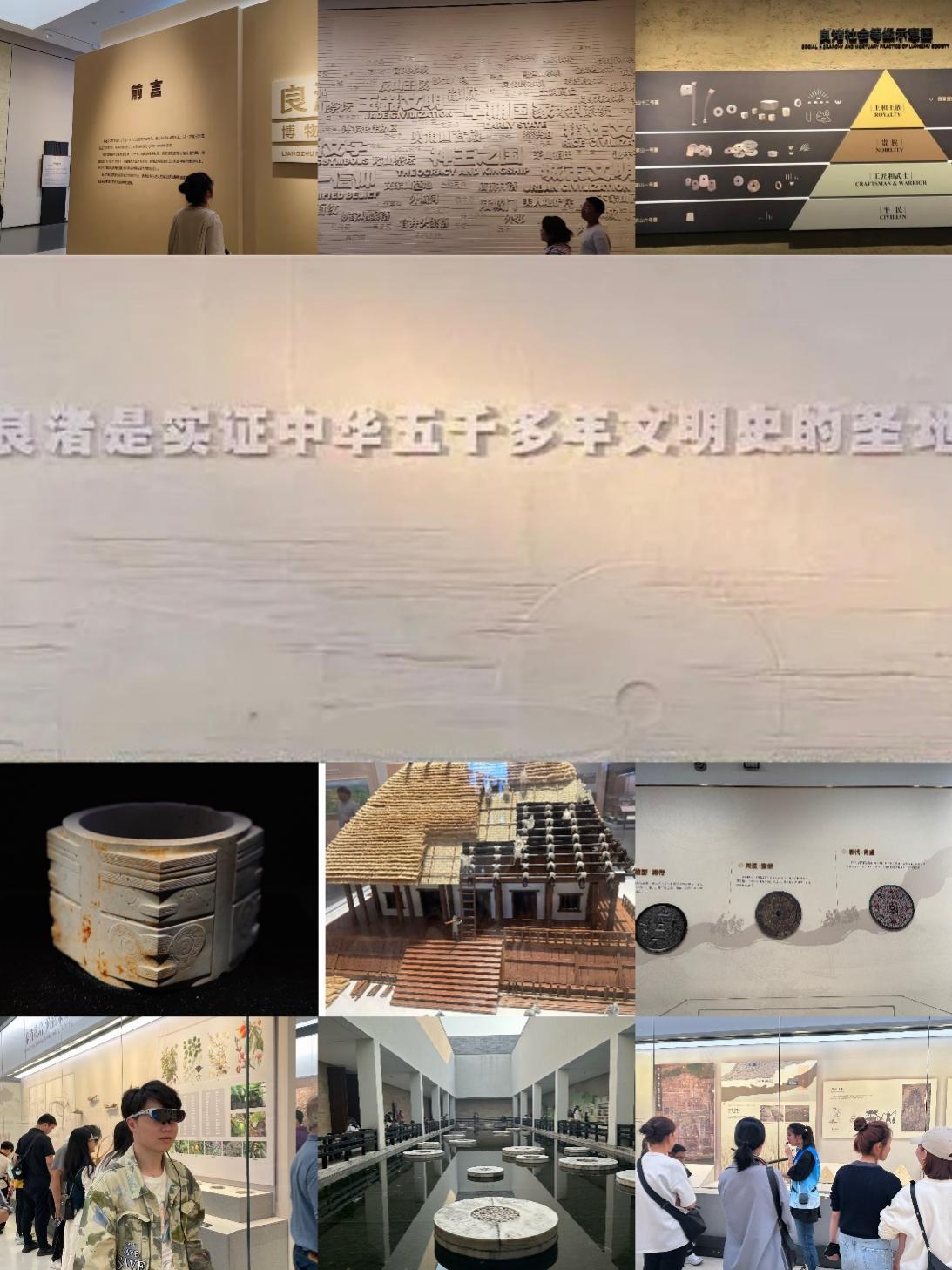 良渚博物院常规展览由“水乡泽国”“文明圣地”“玉魂国魄”三个展厅组成,全面、立体、真实地展示了良渚遗址和良渚文化的考古成果、遗产价值,体现了良渚文明在中华文明“多元一体”历史发展进程中的重要地位和独特贡献,展现了中华文明的悠久历史和人文底蕴。馆内除了有义务讲解员,还配备有全球首个基于 AR 眼镜的智慧导览系统。同学们戴上AR眼镜,感受了一次酷炫的沉浸式参观体验。