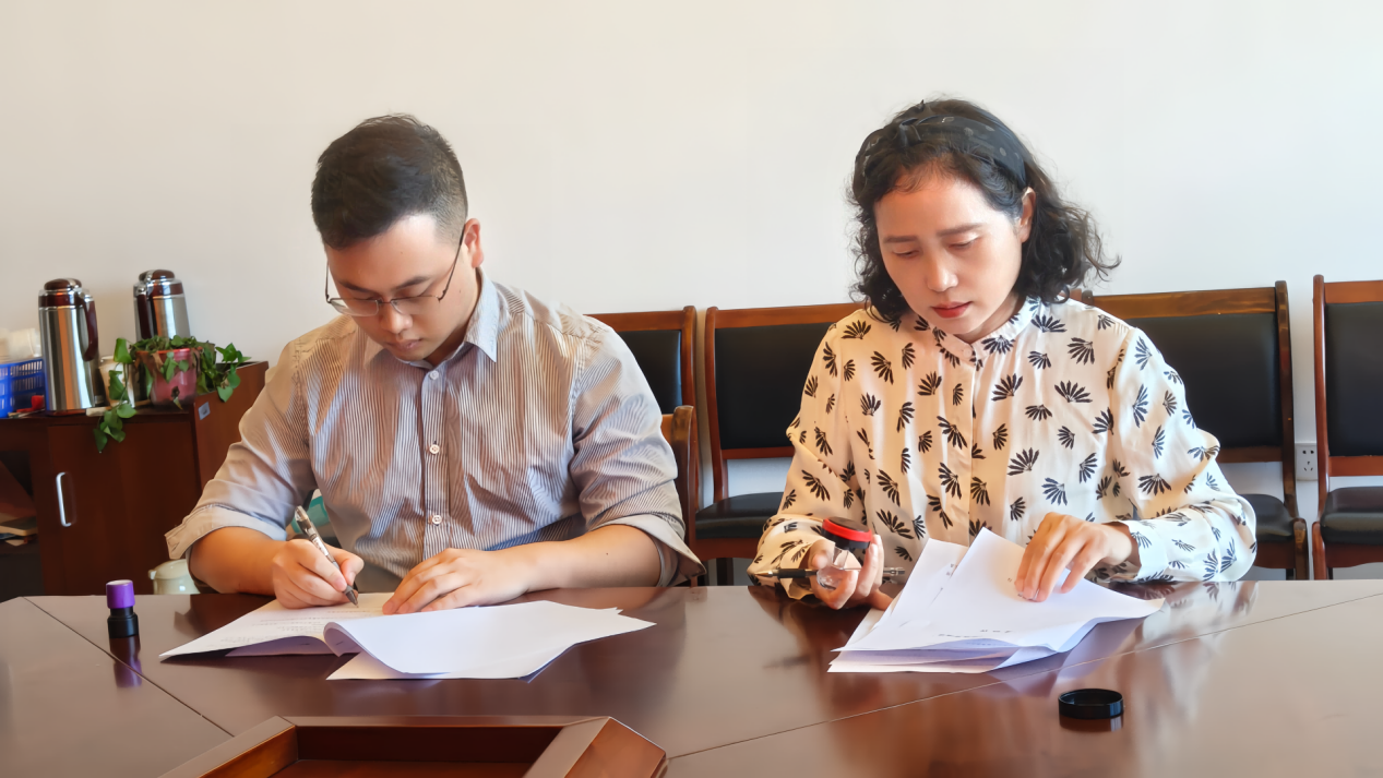 捐赠仪式上,王诩董事长与罗金艳书记作为共同签署了捐赠协议。