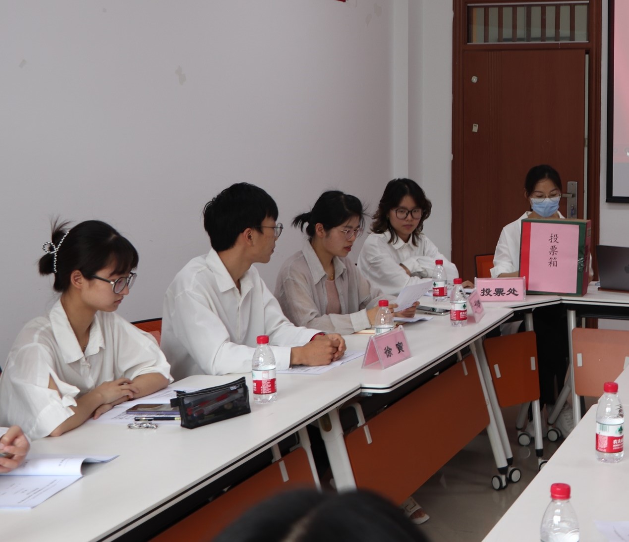 委员会委员和主席团成员选举,总监票人刘华婷老师全程核实,各研究生代表填写投票,计票人统计各候选人选票,最终由刘华婷老师宣布计票结果,选举卢慧珊、杨佳慧为成人韩漫