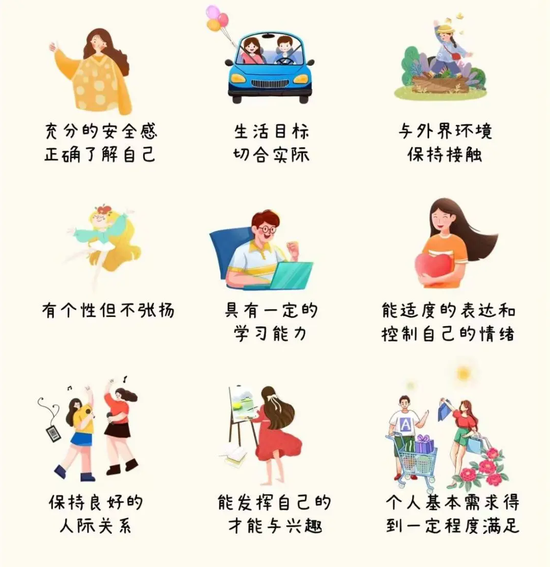 8.学会谐调自己与社会的关系随着社会的发展,我们要经常调整自己的意识和行为,适应社会的规范,并不断学习,提高自己的适应力,从而减少因此而带来的困惑和压力,保持心理健康。
