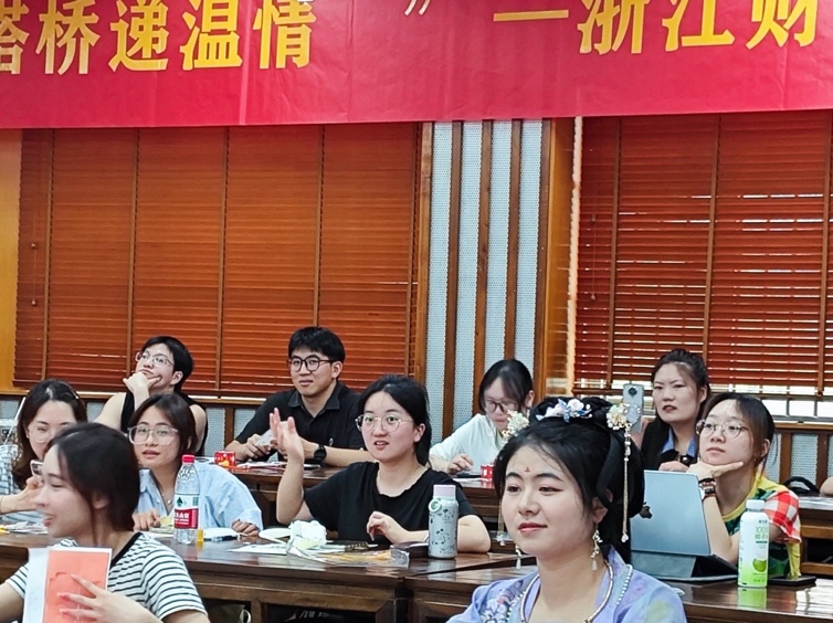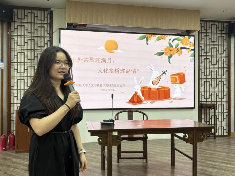 活动伊始,新闻与传播专业研究生张欣悦以“嫦娥奔月”这一瑰丽的神话传说为切入点,生动讲述了中秋佳节所承载的深厚文化内涵与团圆意象。她从历史渊源、民间习俗到诗词歌赋,娓娓道来,引发了在场同学的浓厚兴趣。在其引导下,中外学子踊跃分享了各自家乡与中秋相关的故事与风俗,不同文化的视角交流碰撞,进一步加深了大家对这一传统节日的理解与情感共鸣。