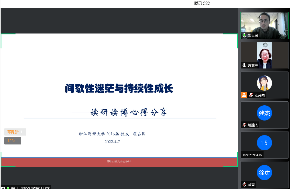 党委副书记袁慧兰老师主持,辅导员汪诗雨、全体研究生及部分本科生以“云”为媒参与了此次校友沙龙。