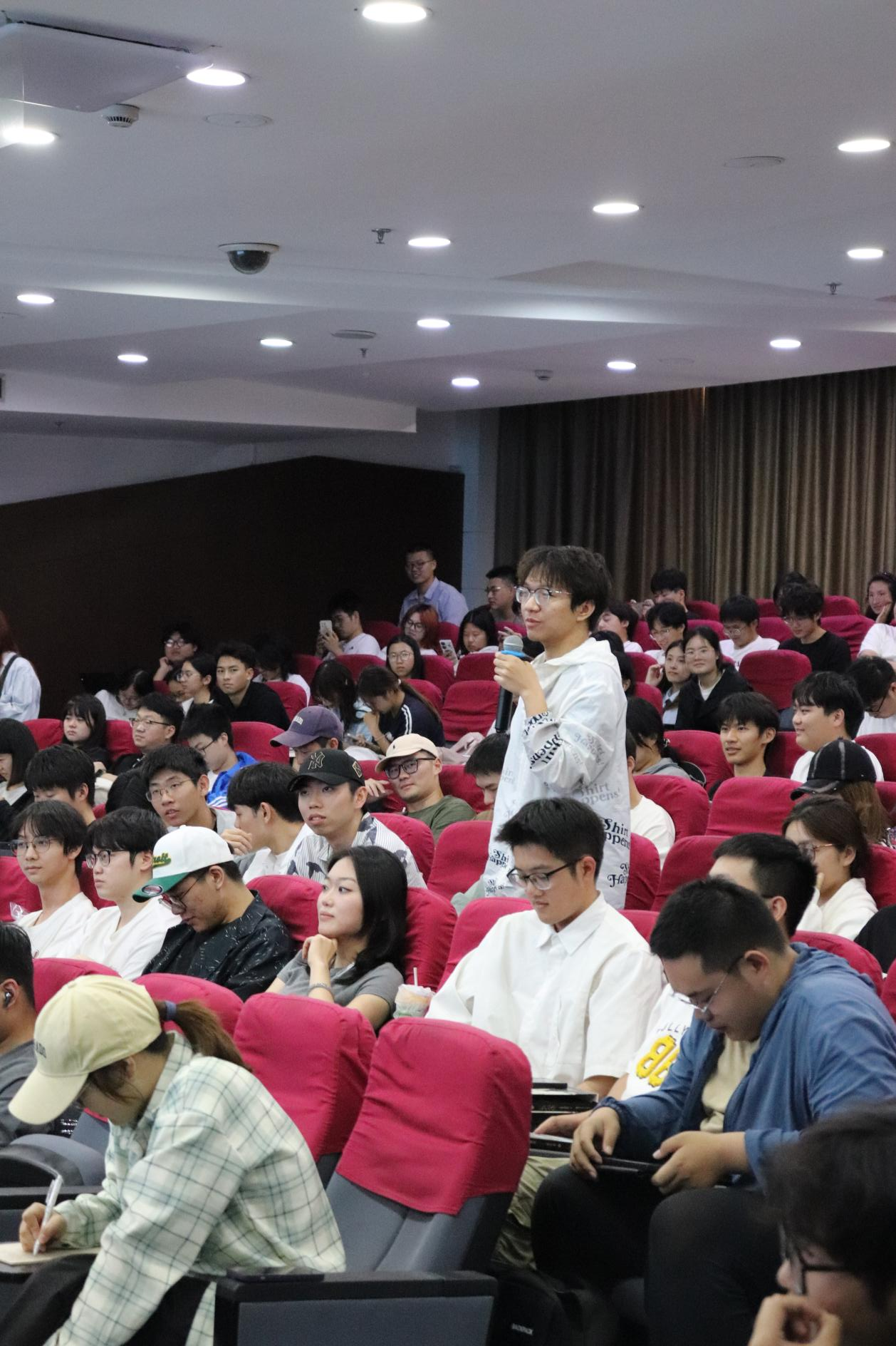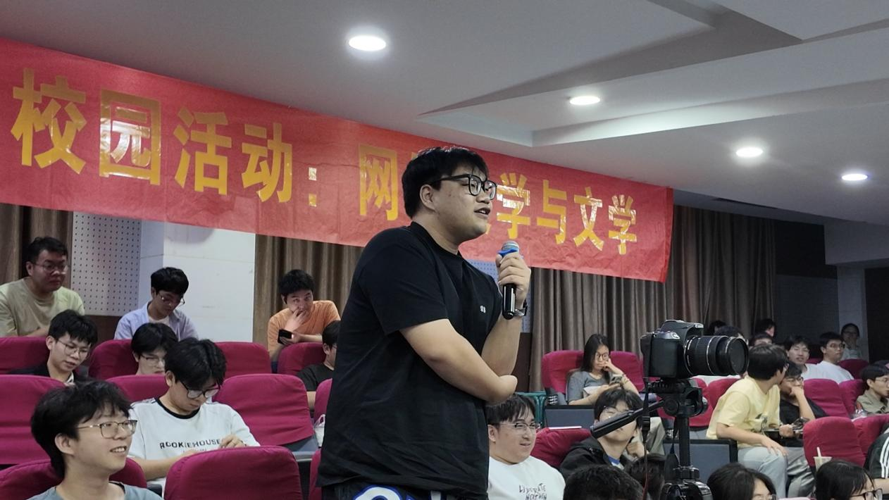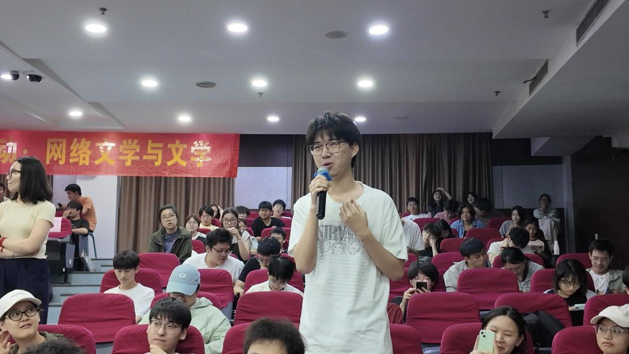 在互动提问环节,现场同学纷纷举手,围绕网络文学的阅读方式、文学性与故事性的平衡、人物塑造、AI写作、影视化改编等问题与烽火戏诸侯展开深入对话。烽火戏诸侯均以鲜活案例与真切体会予以回应,并且特别强调优秀的网络文学作品不仅应在故事性和人物成长上独树一帜,更要在世界观上进行深入地思考和构建,创作出更具深度和持久性的作品。不少学生意犹未尽,在签名环节中,学生们围绕在烽火戏诸侯身边继续提问交流。