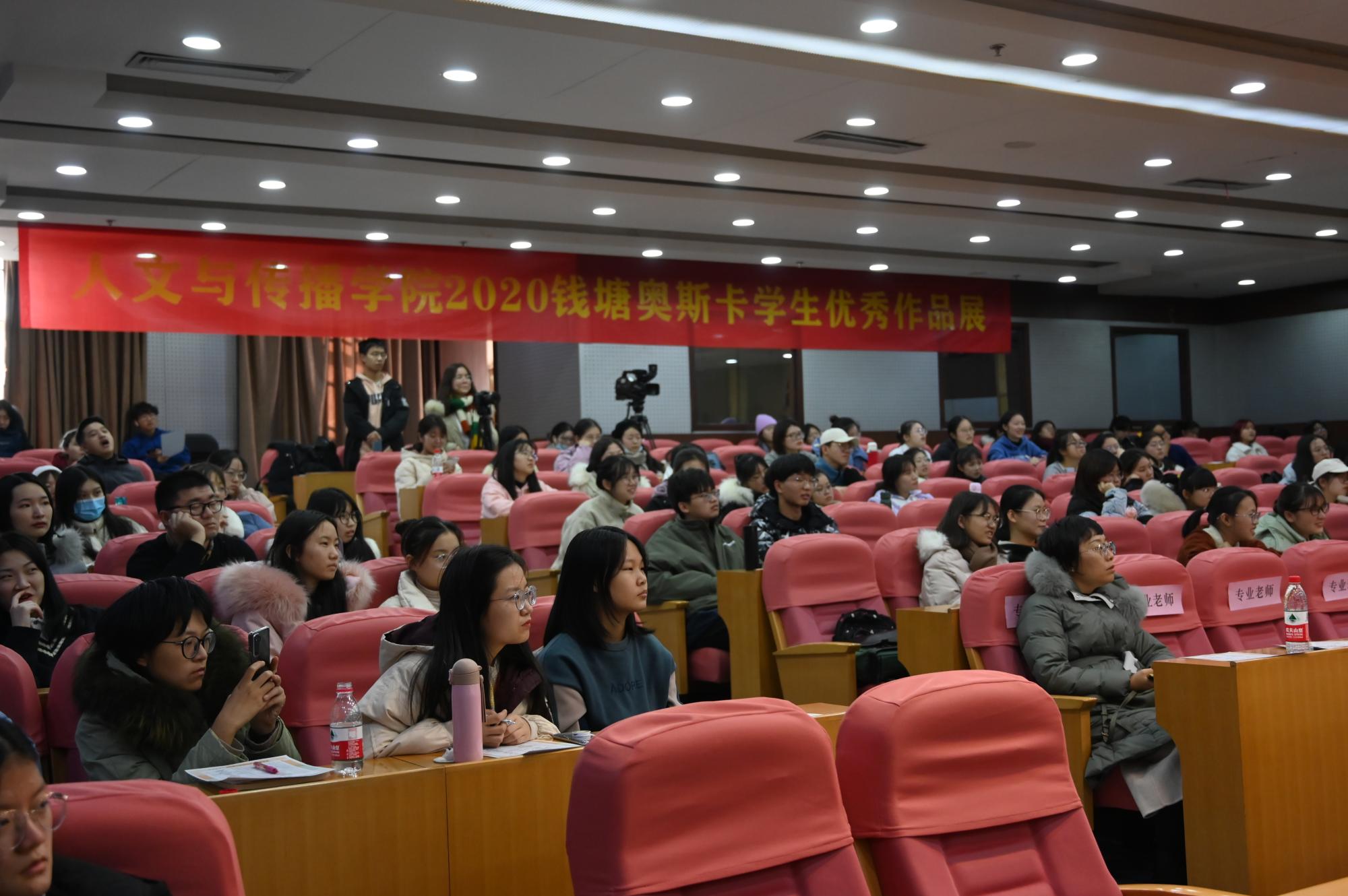 “钱塘奥斯卡应该是又好玩又有用的活动,以后回想起来你们会记得参与过这个有意义的活动”,院长周保欣充满激情的讲话引发在场同学们的共鸣,这是12月15日学术中心第二报告厅举办的2020年“钱塘奥斯卡”学生优秀作品展现场的精彩一幕。院长周保欣、党委书记高燕、副院长陈静、副书记袁慧兰、院长助理吴智斌、广告系和数字媒体系教师代表和一百多名师生参与了此次作品展。出席本次活动的还有外校嘉宾,包括:杭州求索广告有限公司代表吕黄平先生,江一帆先生,浙江风盛传媒有限公司办公室主任黄琳淇校友,浙江智匠影视文化有限公司创始人赵国强校友。