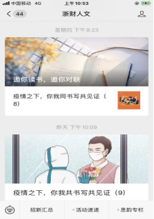学子抗疫征文近30篇,每篇文章都经姚老师仔细审稿和精心修改后,由“浙财人文”公众号持续推出。在这场全国性的疫情当中,学生们通过力透纸背的文字表达了当代年轻人的担当和使命感,也学会了辨识来自四面八方的观点和声音,深化了对当代中国、当代社会的个体自觉意识。