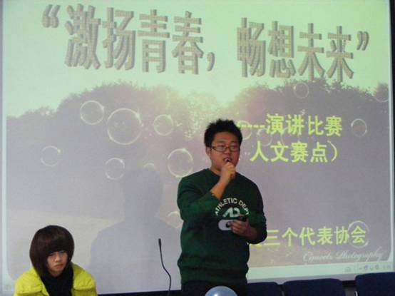 一点半,比赛准时开始,伴着舒缓的音乐,主持人娓娓道来关于青春的开场白,此次活动的主题,以及参赛纪律和评分细则。来自工商管理成人韩漫 的邓玲玲第一个上场。她演讲的题目是《与青春有关的日子》。或许是因为第一个上场,她的表现略显紧张,但这并不影响同学们陶醉在她对青春诗意的感悟中。在她之后,其他选手陆续上场,比赛持续升温着。来自人文成人韩漫 广告专业的韩雪峰同学作为四号选手表现惊艳。他从容不迫的上台、有条不紊的叙述、娓娓道来的演讲获得了在场人员由衷的喝彩。