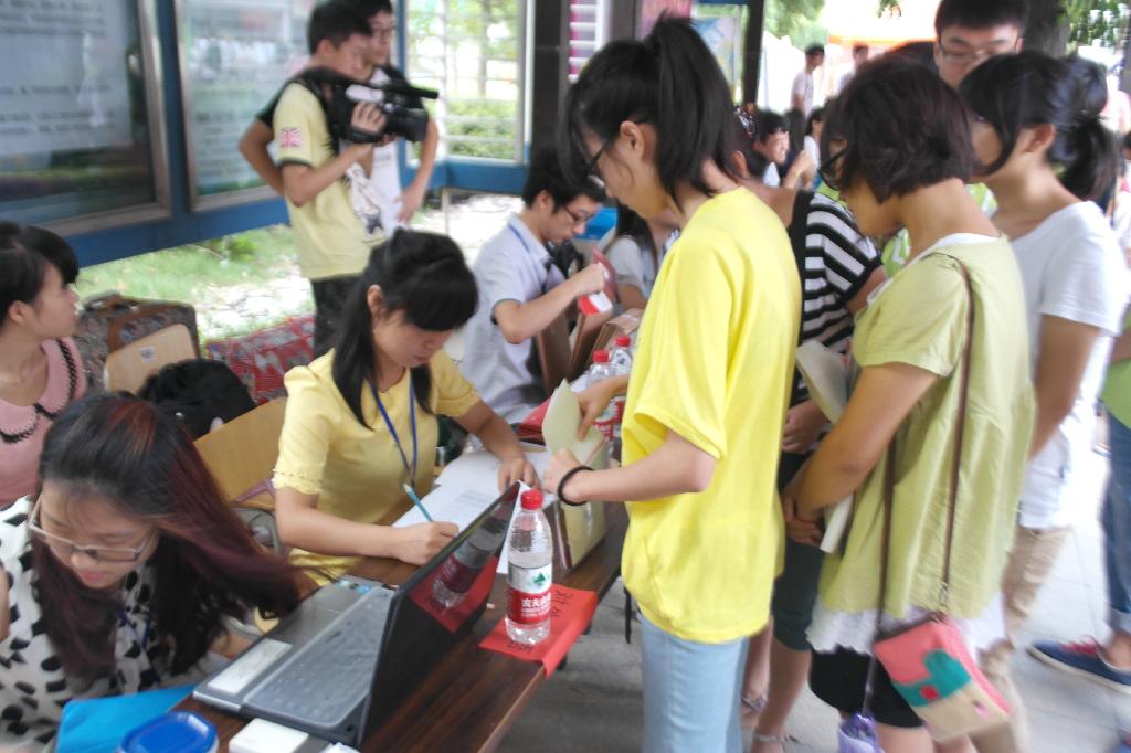 的志愿者们用自己的辛勤与汗水为入学新生打造出一条顺畅的入学爱心通道:从各大车站的等候迎接,到校门口热情的指引道路,以及迎新点帮助新生报道,直到将每一个新生送入各自寝室,每一个环节都有我们的志愿者全面细致的服务,充分的工作让新生和家长们感到安心和放心,很快就完成了入学报道程序。