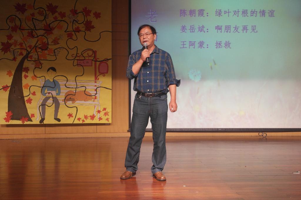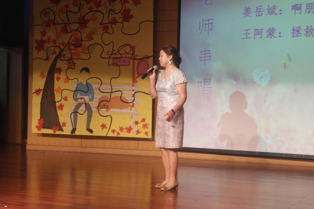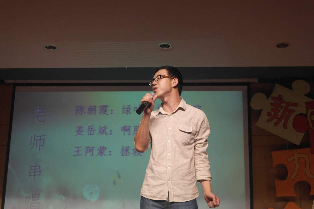 教师歌曲联唱的序幕,也将晚会带入了第二个篇章。王阿蒙、姜岳斌老师也纷纷登场献唱。台上老师们用情深意长的歌声诉说着对来自四面八方同学们的欢迎,台下同学们高举双手伴随着音乐挥舞。平时严肃的老师们的献歌将整场晚会推向了高潮。艺术团的同学带来的舞斗《舞林争霸》也是精彩非凡,两组同学在舞台上展开斗舞,用激烈的形式向观众们展现出多姿多彩的舞蹈,也赢得了全场观众的阵阵掌声。之后,师生联袂的诗歌朗诵令在场的各位深深体会到诗意的灵魂与生命.