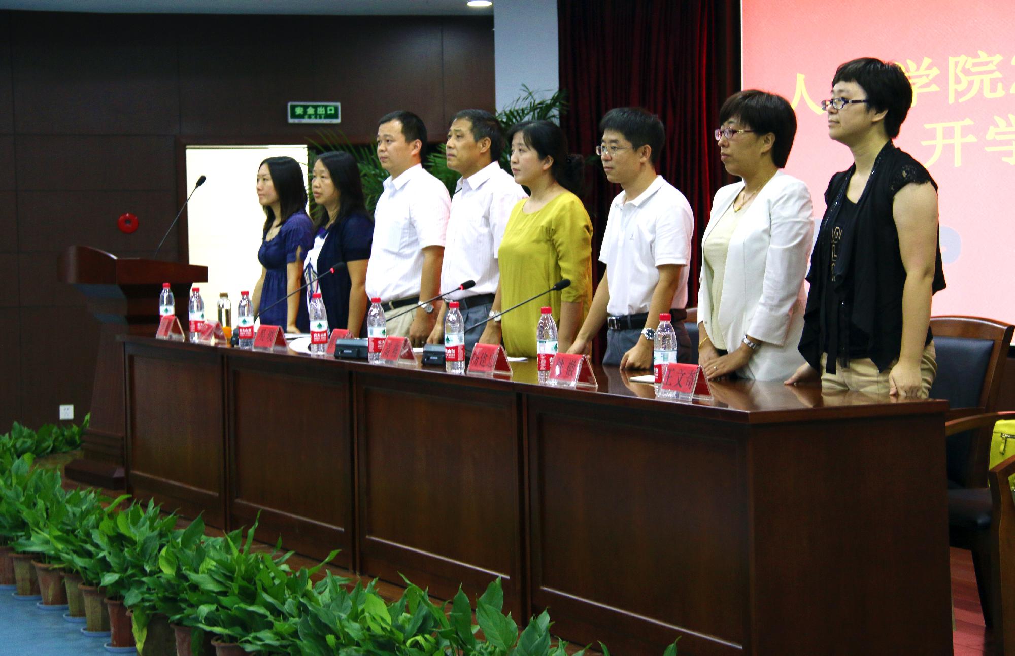 院长何华珍、党总支副书记(主持工作)高燕、副书记吴玻、院长助理杨建忠和系主任出席典礼。典礼由吴玻老师主持,人文成人韩漫