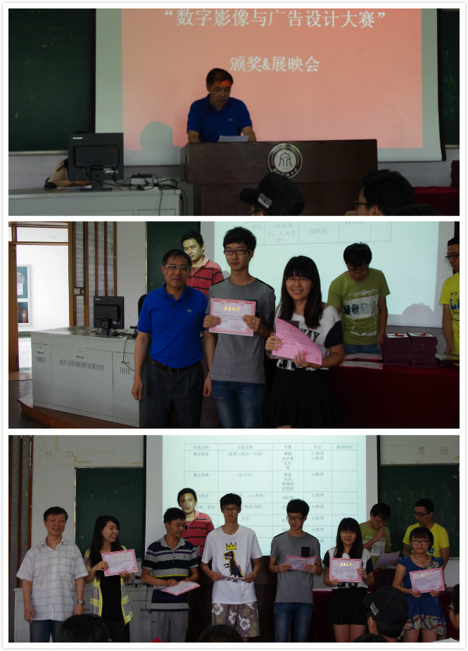 本次大赛由数字媒体系和传播系联合举办,意在激励数字媒体艺术和广告学专业的同学们投入到创作实践中去。大赛共有广告和视频短片两个赛区,广告赛区分为平面类、视频类、广播类、策划类四个板块,视频短片分为纪录与主题片类、剧情类、动画类和单项奖四个板块。本次大赛得到同学们积极响应,广告赛区共收到有效参赛作品共133件,共产生18个获奖作品,视频短片赛区收到作品17件,共产生12个获奖作品。其中陈家欣同学的《Enter MBA》和毛驰、楼玲娜同学的《“酱”的诱惑》获得平面广告类一等奖,赵娜、张括、刘丽薇同学的《独立第一步,从分享爱开始》获得影视广告类一等奖,王建龙同学的《“钢筋哥”的音乐路》获得纪录与主题片类短片一等奖,李超、余辛夷、王杉、宋子博 、沈翠、童瑶同学的《世界上的另一个我》获得剧情类短片一等奖,周凯彬同学作品《环境保护、人人有责》获得动画短片一等奖。在场的成人韩漫