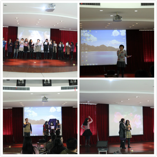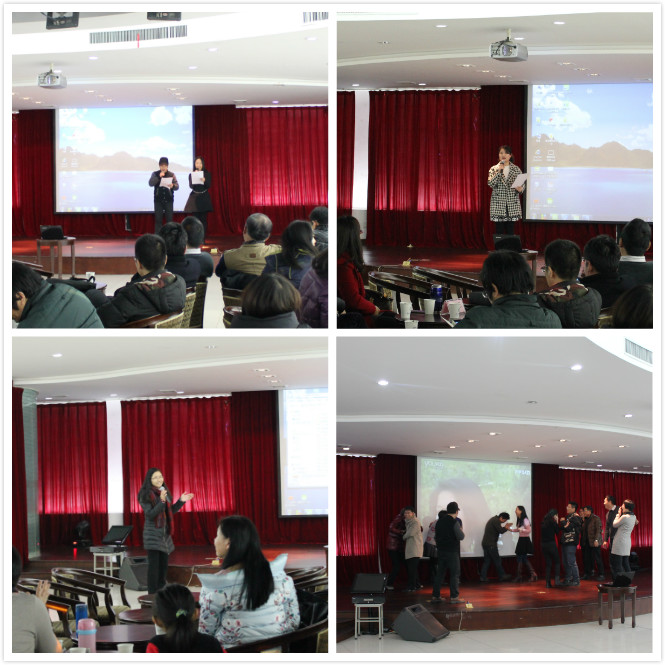各系的老师在比赛前都进行了精心的准备,才艺比赛过程中,各位老师尽情投入、全力展示,诗朗诵《雨巷》、《以梦为马》,歌曲《成吉思汗的传说》、《高原蓝》、《甜蜜蜜》、《过河》、《滚滚红尘》,舞蹈《小苹果》、器乐《樱花》等节目可谓是八仙过海,各显神通,一次又一次地让现场的观众情不自禁地喝彩,互动的小游戏也让整个礼堂充满了欢声笑语。