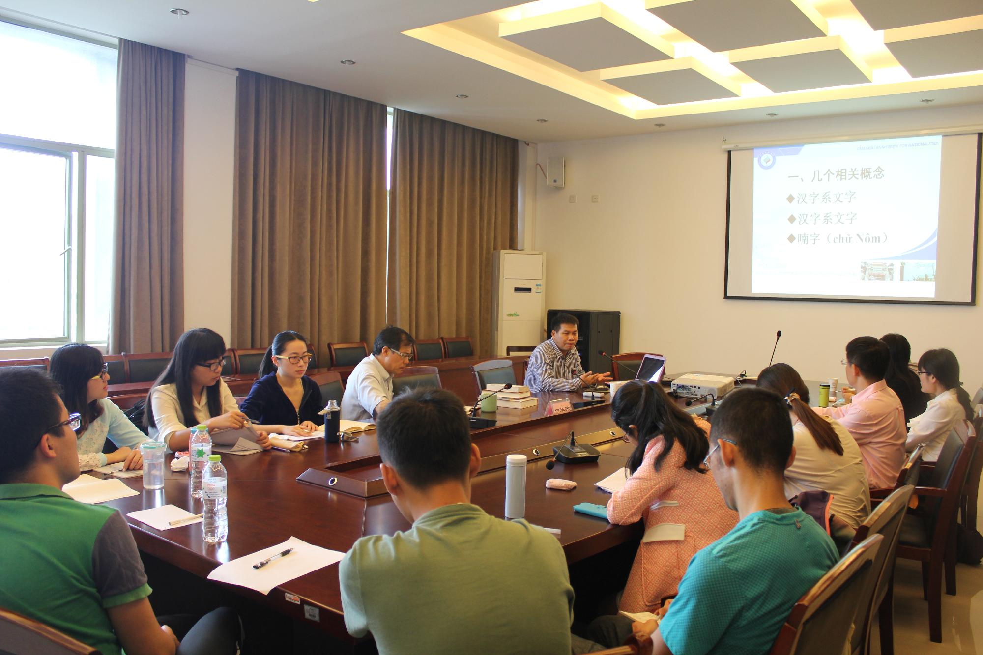 师生做了题为《喃字、岱喃字、古壮字的共性与差异性》的学术报告。学术报告由何华珍院长主持。
