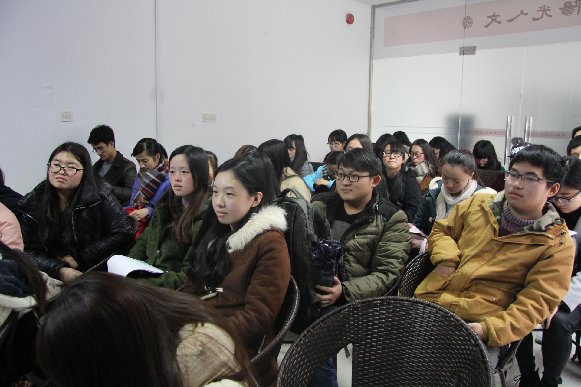 今后还会选取不同主题持续推出,成为一个品牌,希望同学们积极参加,通过活动扩充自己的知识面,提高自身的人文素养。崔老师则先向同学们分发了事先整理的诗歌资料,通过播放名曲音乐、自己开嗓而唱等形式,从文学与诗词、诗歌和音乐的小话题引出,带领同学们回顾了中国诗词与音乐结缘的历程,介绍了游走在文学和音乐之间的文人,阐述了中国古诗词和流行音乐的关系。她谈古论今,列举典故,介绍和“诗”“歌”有关的孔子、屈原、李白、王维、苏轼、柳永等名家之事,深深吸引了同学们,使大家感受颇深。她还向同学们推荐了几本书籍,希望同学们不断积累,提高文学修养,将文学和音乐更好融合,让古代诗词与音律更好地相融。袁慧兰老师针对崔老师所讲内容谈了自己感受,展望了同学们的专业前景,使同学们倍受鼓舞。