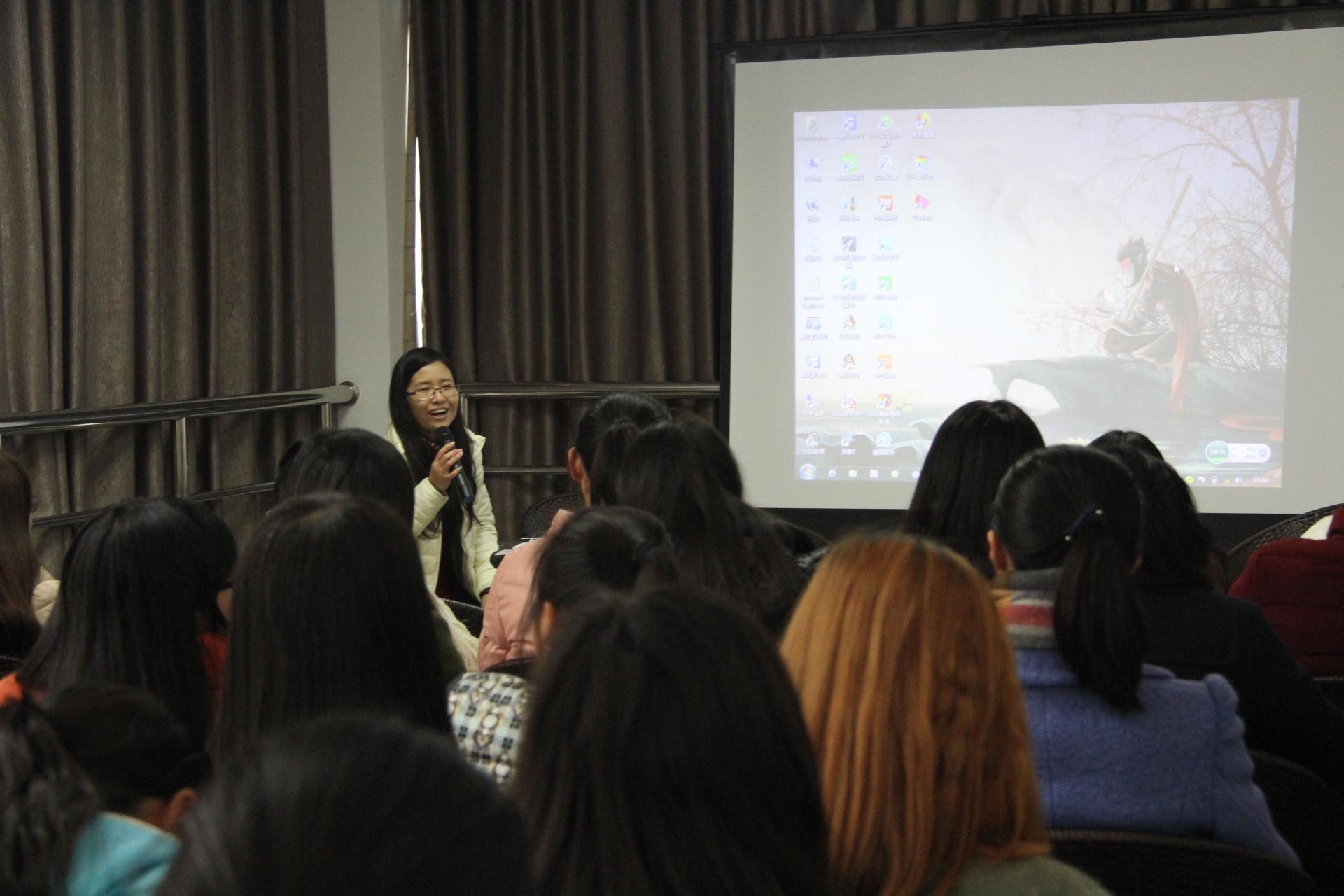 教师崔霞副教授主讲,党总支副书记吴玻、辅导员袁慧兰出席了本次活动,文学和汉教专业部分同学参加。