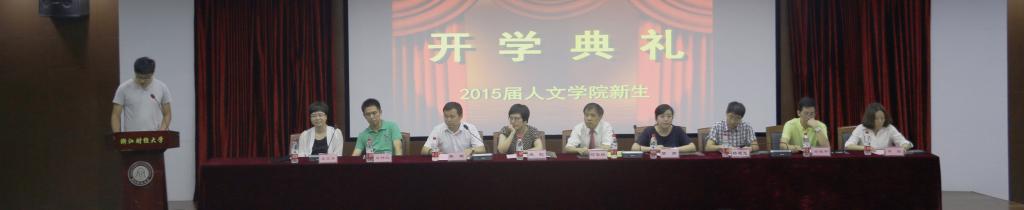 2015级新生开学典礼在学术四报告厅隆重举行。院长何华珍、党总支副书记(主持工作)高燕、副院长姚红、副书记吴玻、院长助理杨建忠和系主任出席典礼。典礼由吴玻老师主持,人文成人韩漫