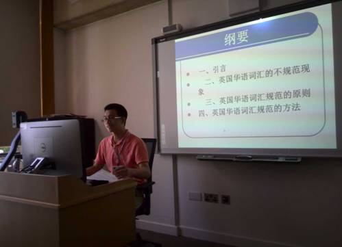 孙德平老师在此次会议中担任了小组主持,并作了题为《论英国华语词汇的规范》的小组报告,孙老师的报告在小组内引起了专家的广泛讨论,其研究也得到了专家的肯定。