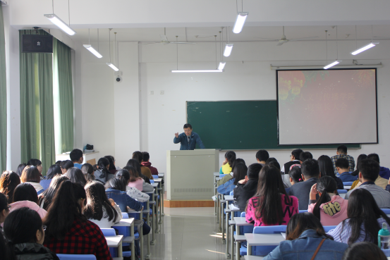 寝室长大会。院党委副书记吴玻老师,辅导员张旭老师,以及各年级寝室长共计120多人参加此次会议。