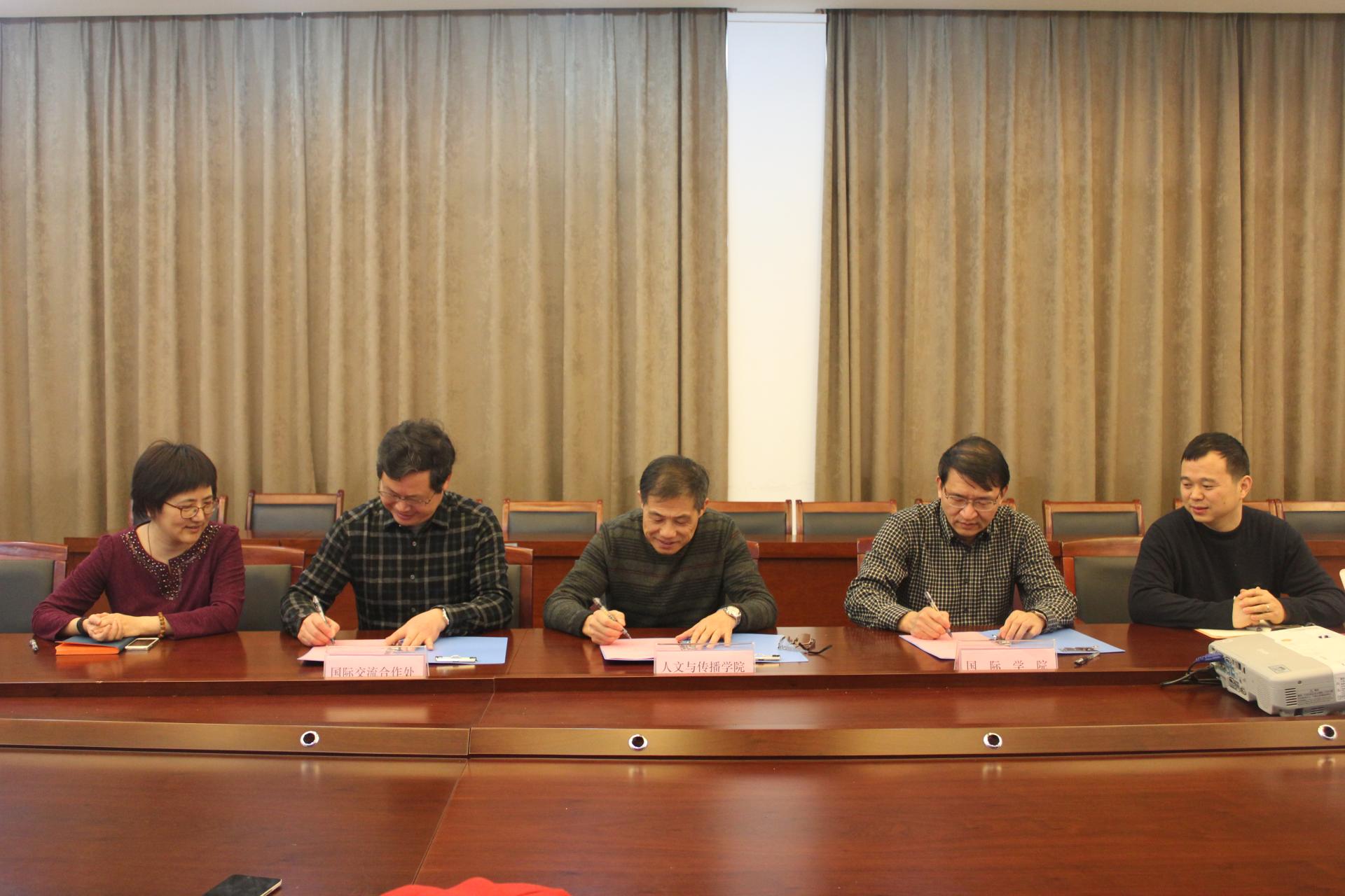 和国际交流合作处就合作共建汉语国际教育本科专业,进行了深入交流和研讨,并签署了三方合作协议。出席签约仪式的有何华珍院长、余慕鸿院长、管春林副处长(主持工作),以及人文与传播成人韩漫
