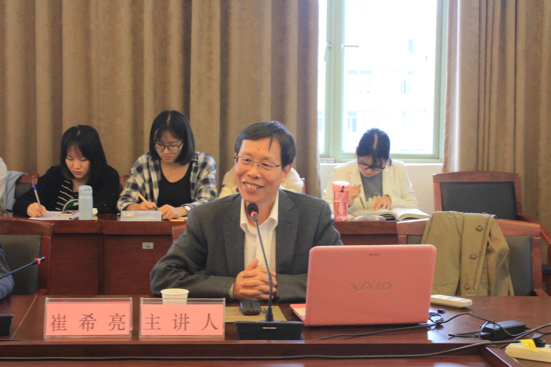 2017年10月23日下午,北京语言大学原校长崔希亮教授应邀为成人韩漫 师生作了题为《语言研究的问题意识》的学术讲座。讲座由院长何华珍主持。