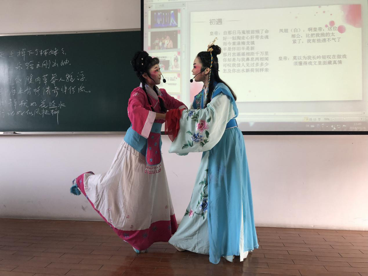 10月26日周五,浙财大《戏剧鉴赏》和《中国古代戏曲鉴赏》班上的同学,惊奇地发现这次给他们上课的,是戏中人物贾宝玉和林黛玉。