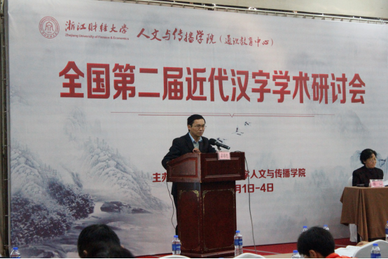 新当选的近代汉字学会会长张涌泉教授发表讲话。他提出了近代汉字研究的目标、任务和希望。湖南师范大学文成人韩漫