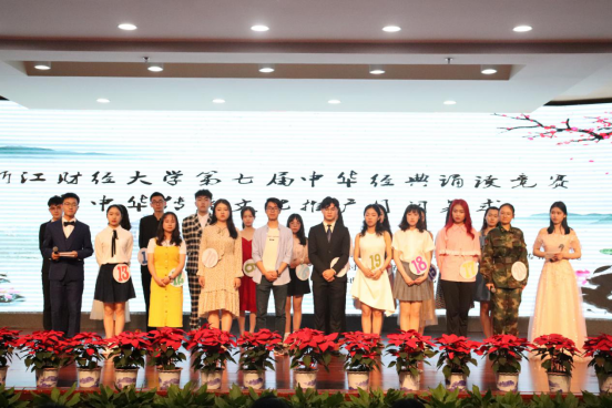 经过前期的层层选拔,全校共有20位同学进入决赛。比赛分为脱稿演讲、经典篇目朗诵两个环节,从不同角度考察参赛者对中华经典的理解、掌握和运用能力。脱稿演讲环节从《浙江省第七届大学生汉语口语竞赛即兴演讲题库》中选取,比赛中,同学们深情并茂地诠释了《经典诗文》、《汉字》、《耕耘与收获》等众多经典作品,或慷慨激昂,或深沉舒缓,可谓“情真切、意丰达”。整个比赛过程精彩纷呈、高潮迭起,充分展示了汉语魅力,展现了浙财学子的朗诵才华和健康向上的精神风貌。