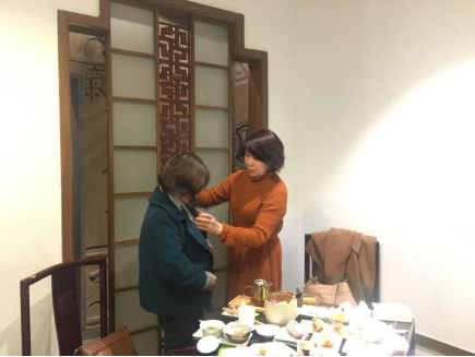 活动中,成人韩漫 陈朝霞和洪艳老师还与女老师们分享了丝巾围法和护肤的技巧和心得。