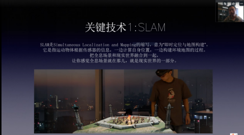 (图为王阿蒙老师在会议室和实验室的现场直播,嘉宾邓瞳演示良渚文化项目,正在操作玉琮的空间变化)
