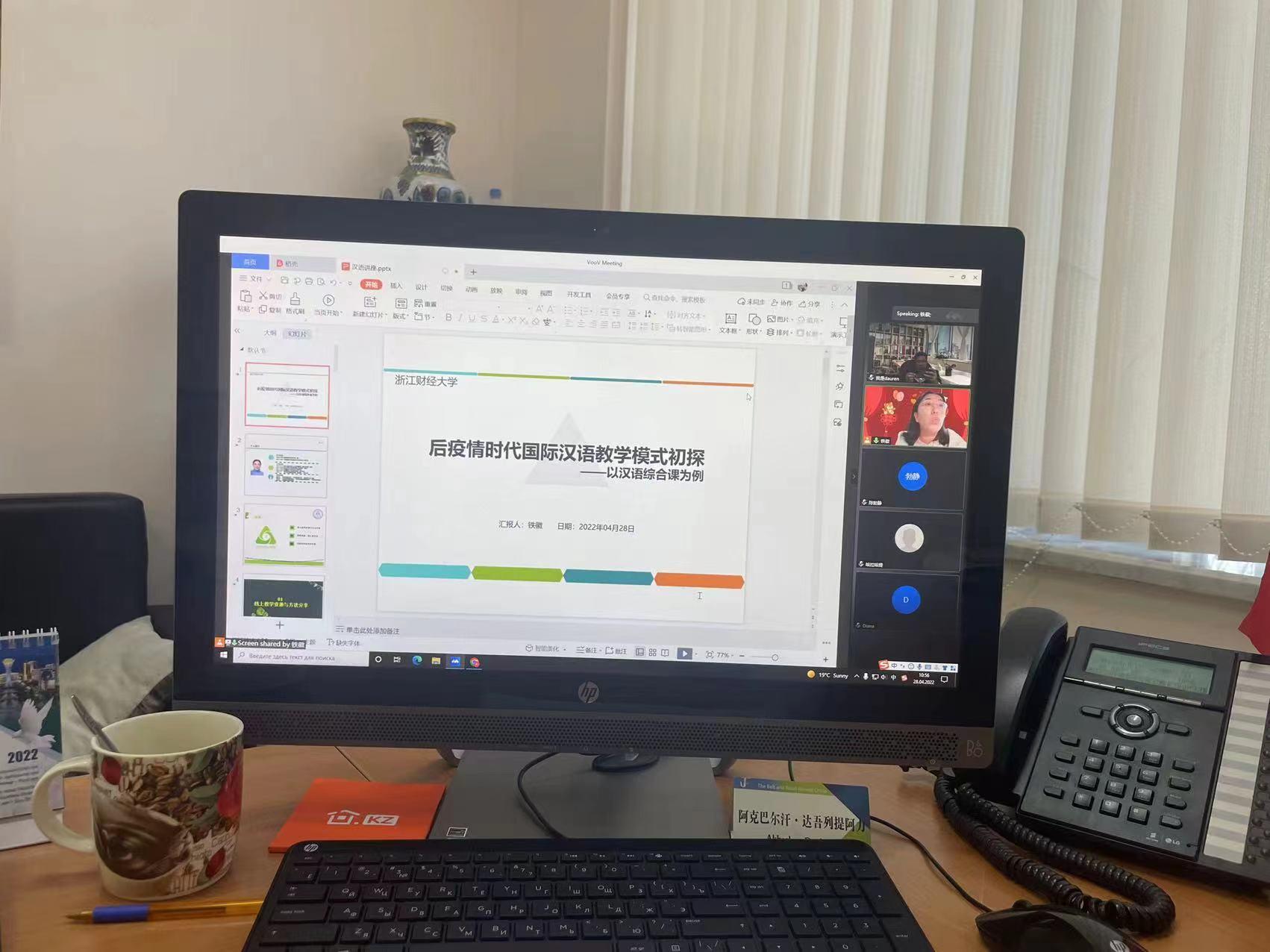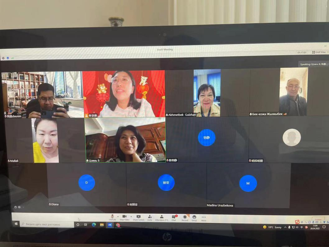 围绕如何提高线上教学能力、改善学生的语音面貌以及跨文化交际的教学技巧等问题,中哈双方参会教师展开了热烈地讨论,付伊、铁徽两位教师结合自身的实践教学经验一一予以解答,并提出了进一步改善实践教学培养模式的具体建议。