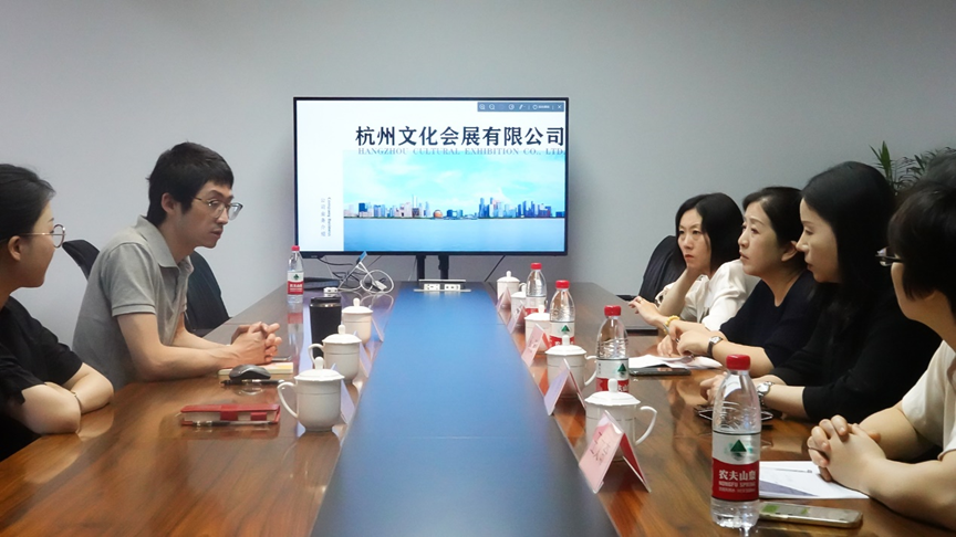 党委书记高燕、副院长陈静、广告系系主任李漪、网新系系主任王文奇和辅导员一行赴杭州文化会展有限公司走访,受到了杭州文化会展有限公司常务副经理舒畅等人的热情接待。