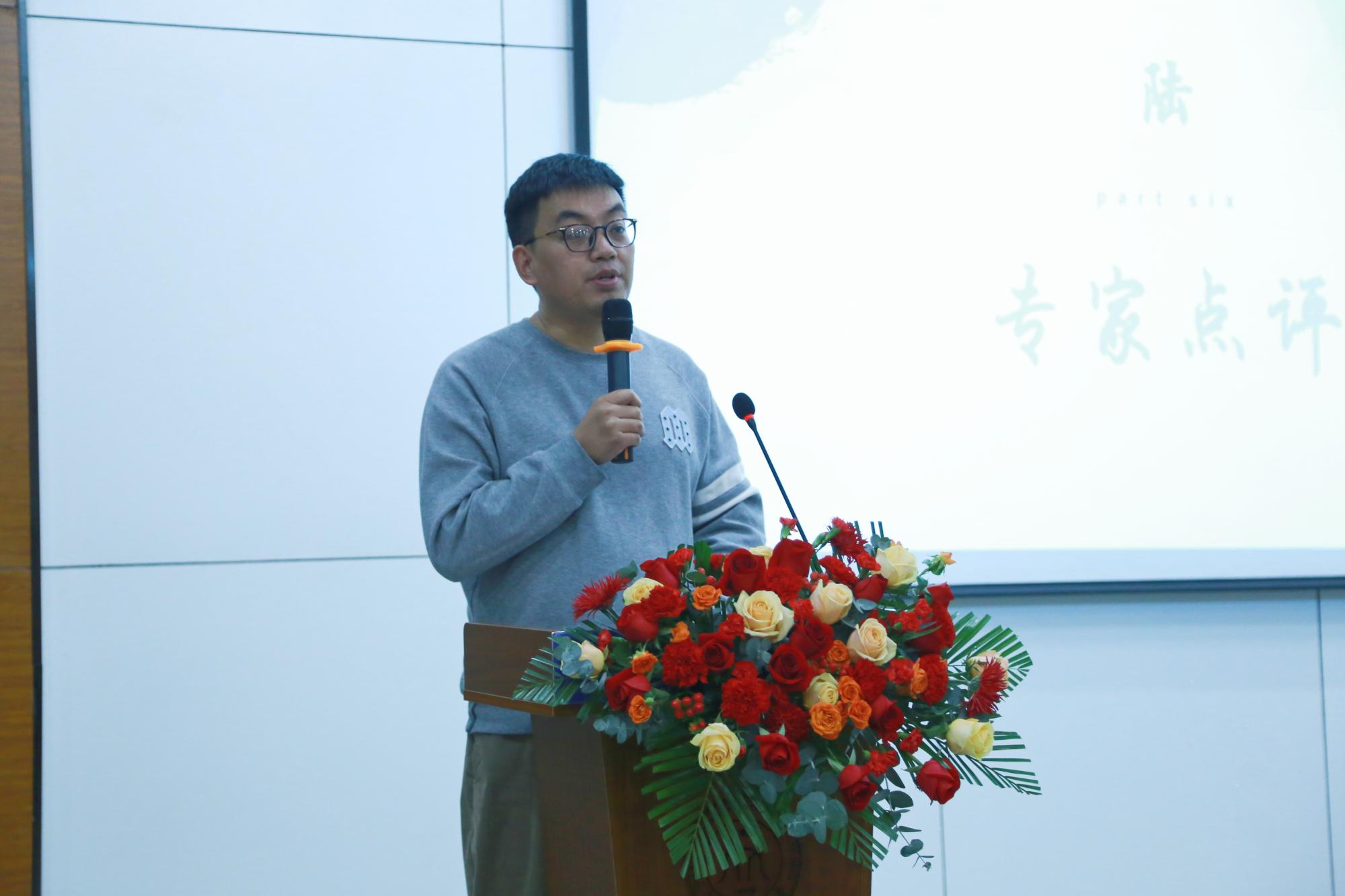 智匠影视文化公司创始人赵国强校友称赞参赛作品较之往年有很大进步,他肯定了《发量王中王》《跨越》的作品完整度,《艺术家与艺术品》的打光等环节制作精细。他鼓励学弟学妹学好专业,未来大有可为。