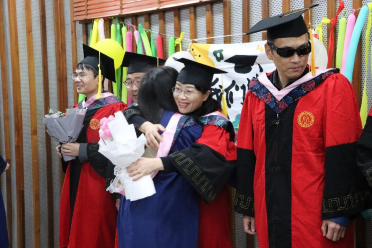 教诲如春风,师恩似海深,我们的成长与收获同时属于传授我们知识和品德的老师。毕业生依次向导师献花,以报师恩。