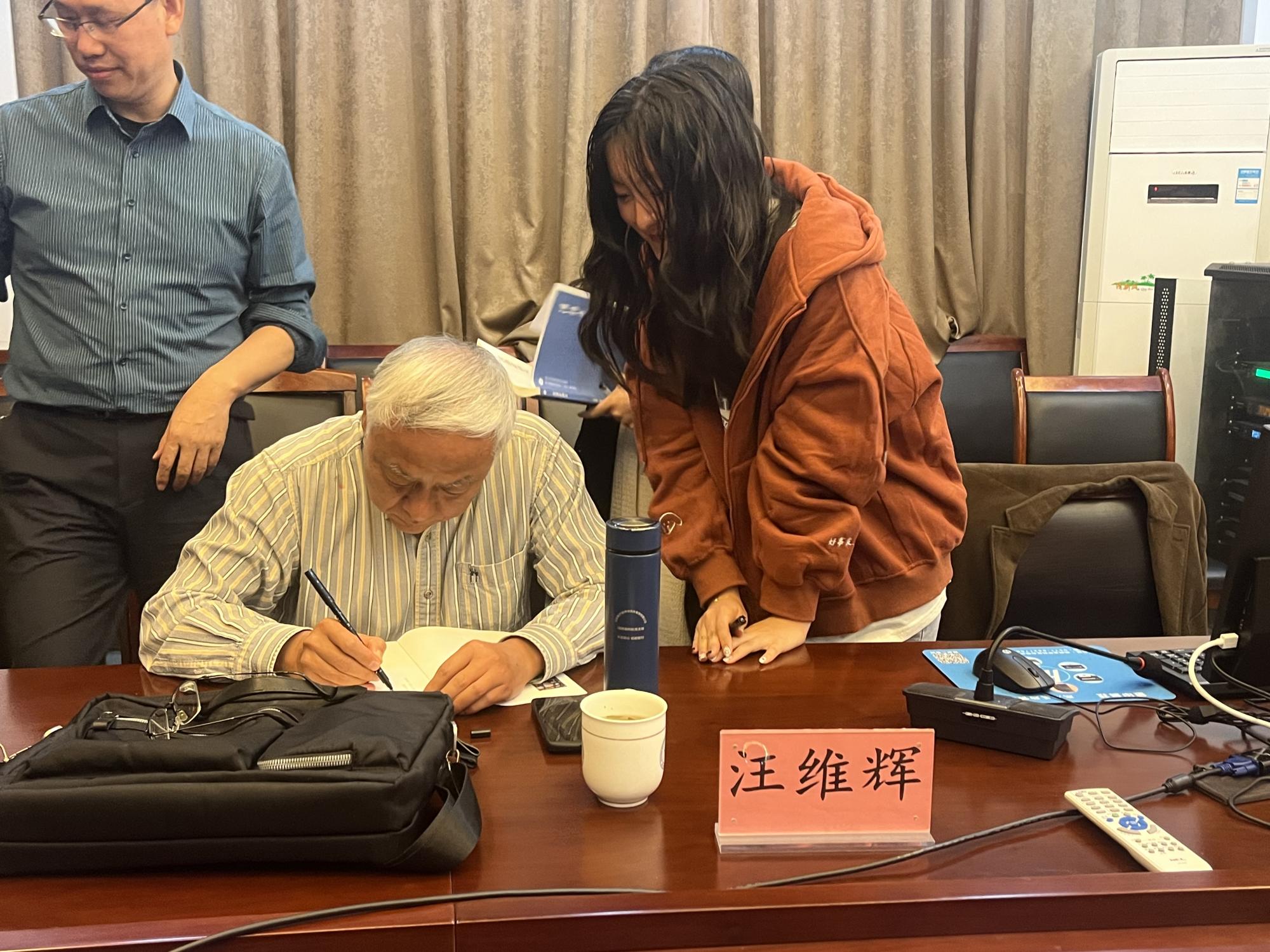 的学术氛围注入了新的活力,帮助学生和教师更好地理解和解读古代文献,同时也引发了更多有关文化传承和语感干扰的思考。讲座结束后,现场数位听众带着汪先生的著作排起队,请先生签名留念。