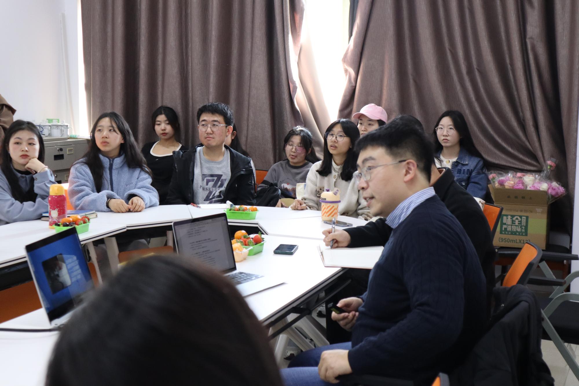 楼403举行。本次读书会由魏梁钰老师主讲,刘财国老师主持,袁慧兰老师以及二十余位同学围桌而坐,共同踏入古希腊哲学的江河。