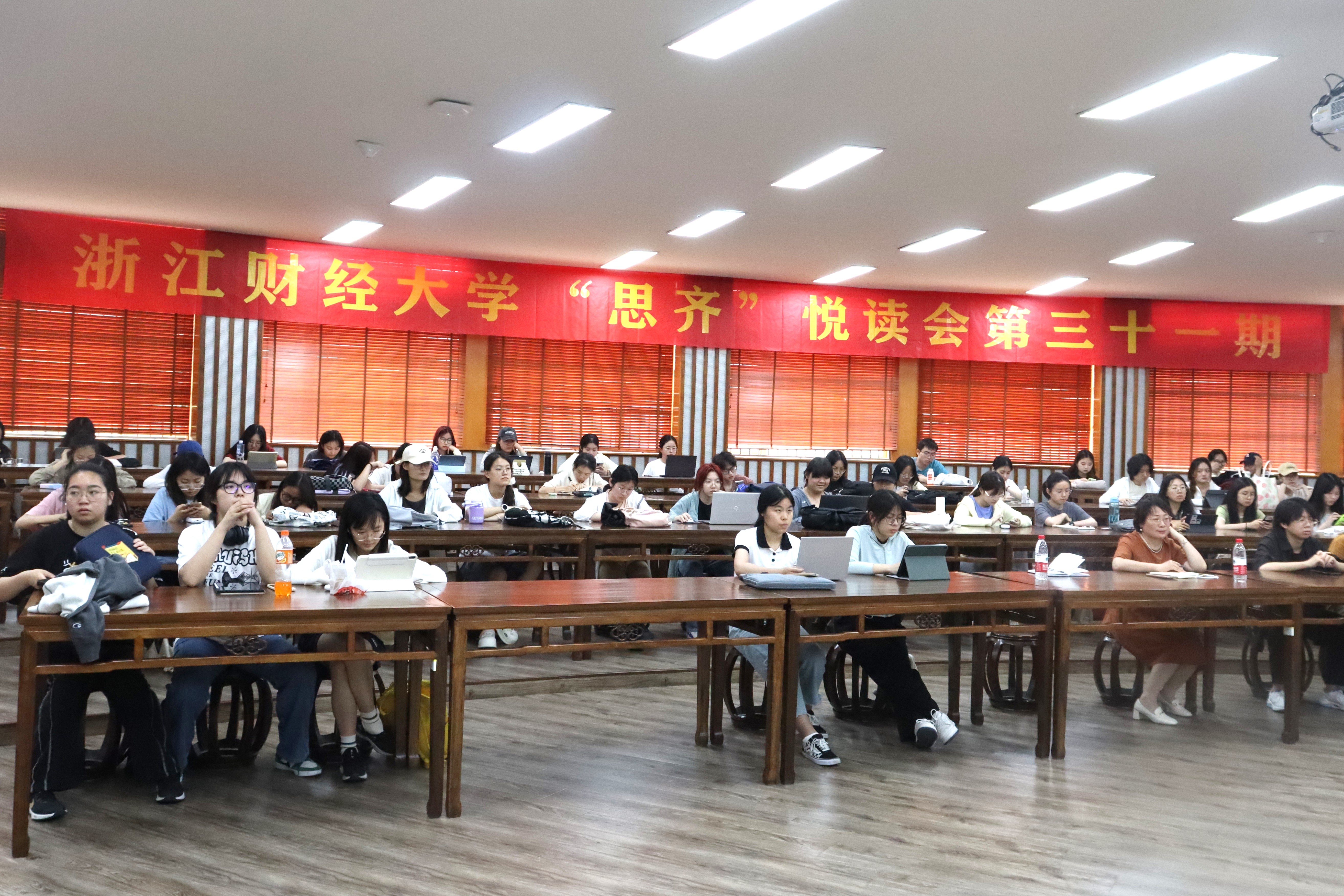 楼问津书院隆重举行。此次读书会由赵春珍副教授主讲,党委副书记袁慧兰主持,辅导员刘财国以及来自全校八十多位同学参加。