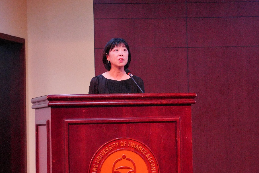黄咏梅老师首先讲述了自己成为大学老师后的感悟与困惑,认为自己的责任是带学生认识感受人与自我、他人和世界的关系。接着回忆大学生涯中阅读《安娜·卡列尼娜》时的沉浸幸福感,指出阅读是传统的沉浸式体验方式,大学四年值得沉浸式体验的不光有阅读,希望大家找到兴趣获得专注,养成习惯。以套改马尔克斯《百年孤独》的开场白作为结语,祝愿同学们在浙财大终有所获。