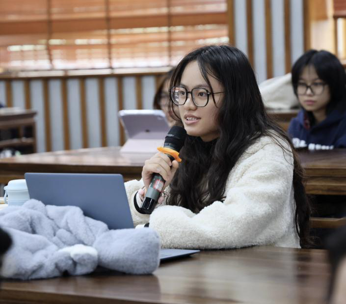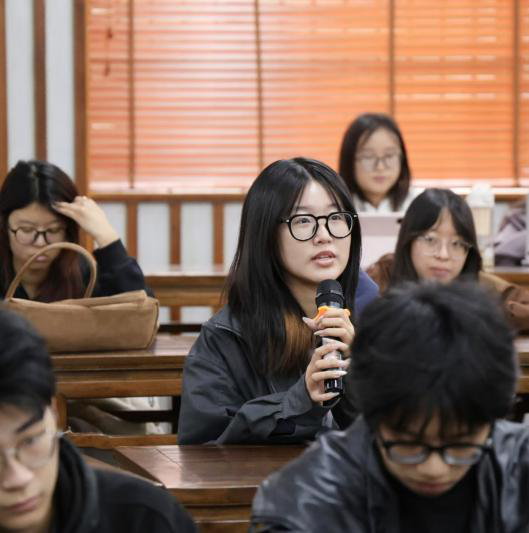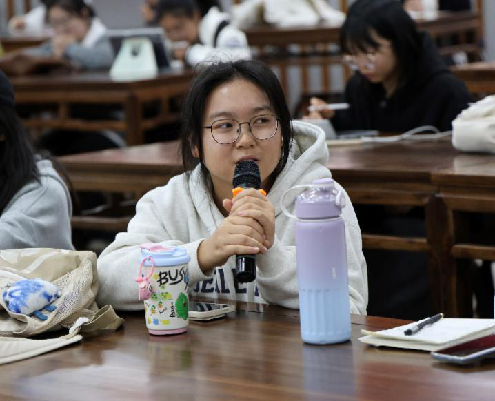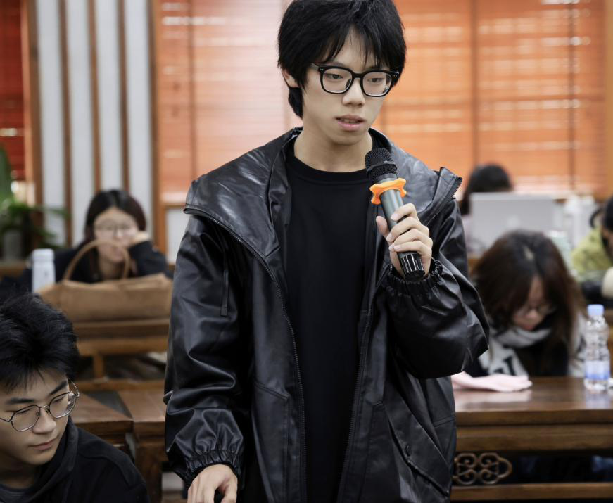 24文学3班林贤梓则提出了自己的问题:“我从这本书中看到了人在社会的孤独,人与人之间互相理解的艰难,但是这部作品的现实意义何在?它彰显了诺贝尔先生设置文学奖时‘追求理想主义’的初衷了吗?值得更加深入的探讨。”