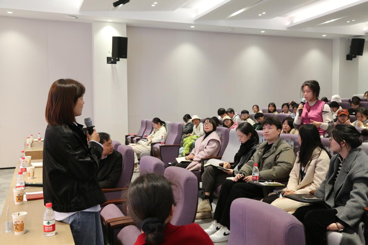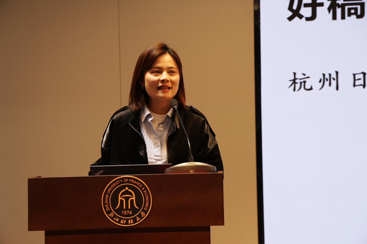 “新闻媒体人员是党的政策主张的传播者、时代风云的记录者,社会进步的推动者、公平正义的守望者。”郑莉娜结合自身工作经验和大量具体案例,作了题为《新闻报道与写作——好稿是怎样“修炼”的》讲座。她从讲政治、讲故事、讲融合三个方面出发,详细阐述了如何写好一篇高质量的新闻稿件。她表示,新闻工作者需要大格局,不仅要有深厚的理论、独特的视角,也要有创新的表达、清新的文风;不仅要有“筋骨”,也要有“血肉”。讲故事是新闻报道与写作的实操技巧,需要践行脚力、眼力、脑力、笔力。好的新闻稿来自现场,讲融合是新闻报道与写作的迭代升级,要让报道可感、可读、入脑入心。她认为,好的新闻作品,人看了一定有情绪,或伤心或愤怒或温暖或感动。她鼓励同学们要勇于实践、敢于创新,多读经典书籍,不断提升专业素养,创作出更多有温度、有价值的新闻作品。