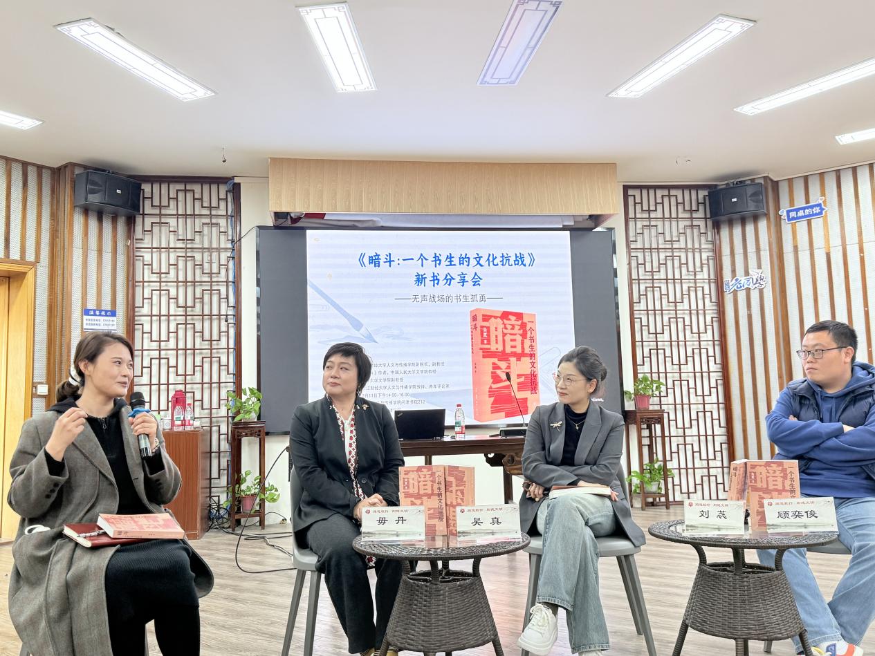 活动伊始,吴真教授分享了这部作品的诞生历程。从2009年一个书页间萌发的念头,到2025年最终成书,《暗斗:一个书生的文化抗战》的创作横跨了整整十六年。吴真教授指出,这本书的写作不仅是一次学术探索,更是一场与历史、与先辈的深度对话,旨在揭示:在烽火连天的岁月里,书籍的命运、文人的抉择与民族文脉存续之间深刻而紧密的关联。