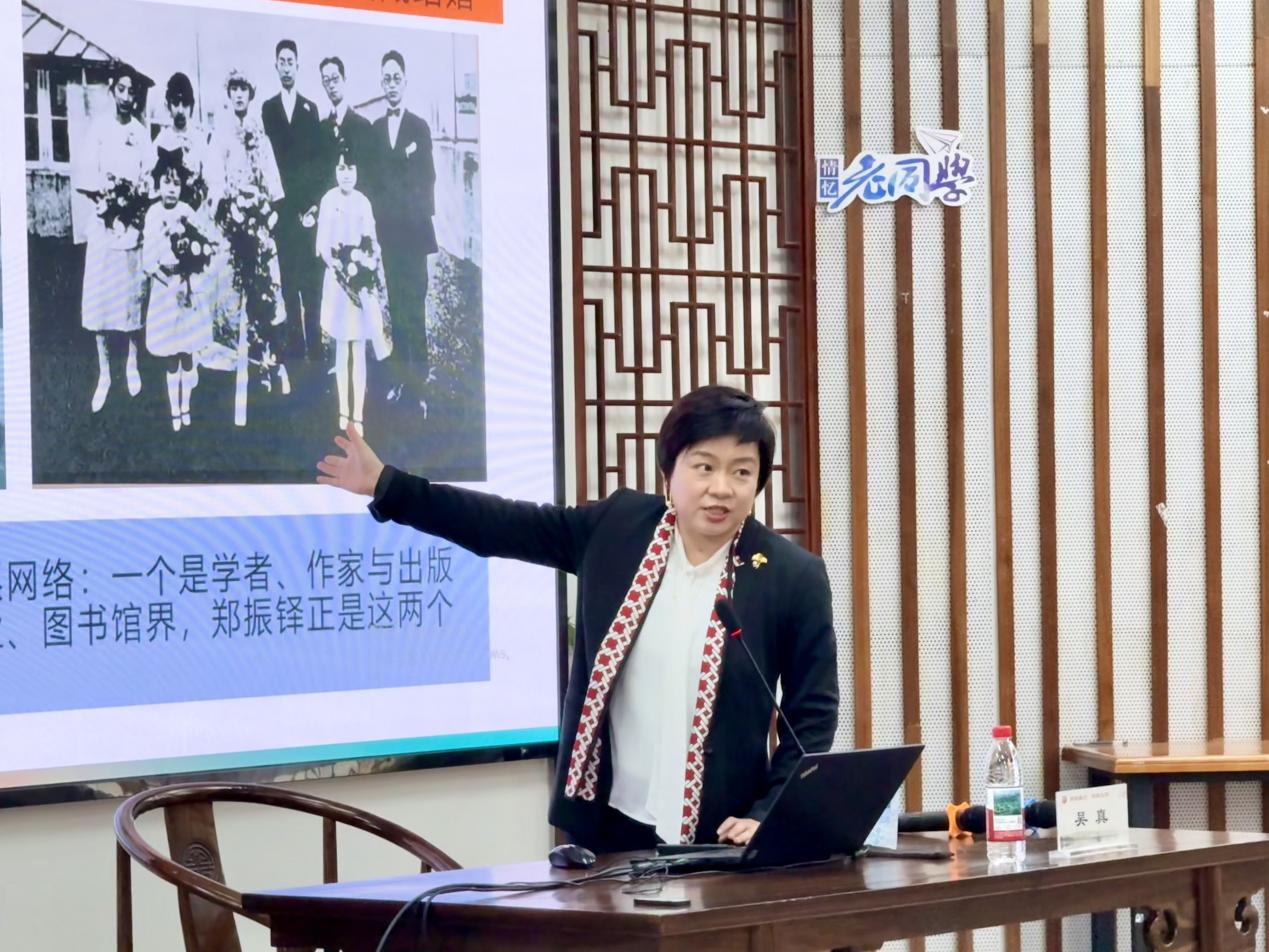 吴真教授随后聚焦本书的核心叙事,深度解读了主人公——五四运动重要参与者、文学家郑振铎在抗战时期的非凡事迹。在上海沦为“孤岛”的极端困境中,郑振铎毅然选择留守。他并非手握刀枪的战士,却以笔和书为阵地,展开了一场惊心动魄的“文化暗斗”。吴真教授详细讲述了郑振铎如何秘密组织“文献保存同志会”,在敌伪监视下,克服重重险阻,为国家抢购、保存大量濒危古籍善本。从鉴别版本、筹措资金,到将数千部珍本巧妙伪装、冒险转运出上海,这段被喻为“一个人的文化抗战”的历史,在吴真教授的讲述中得以生动再现,展现了一位书生在民族危亡之际的孤勇、智慧与深沉的家国担当。