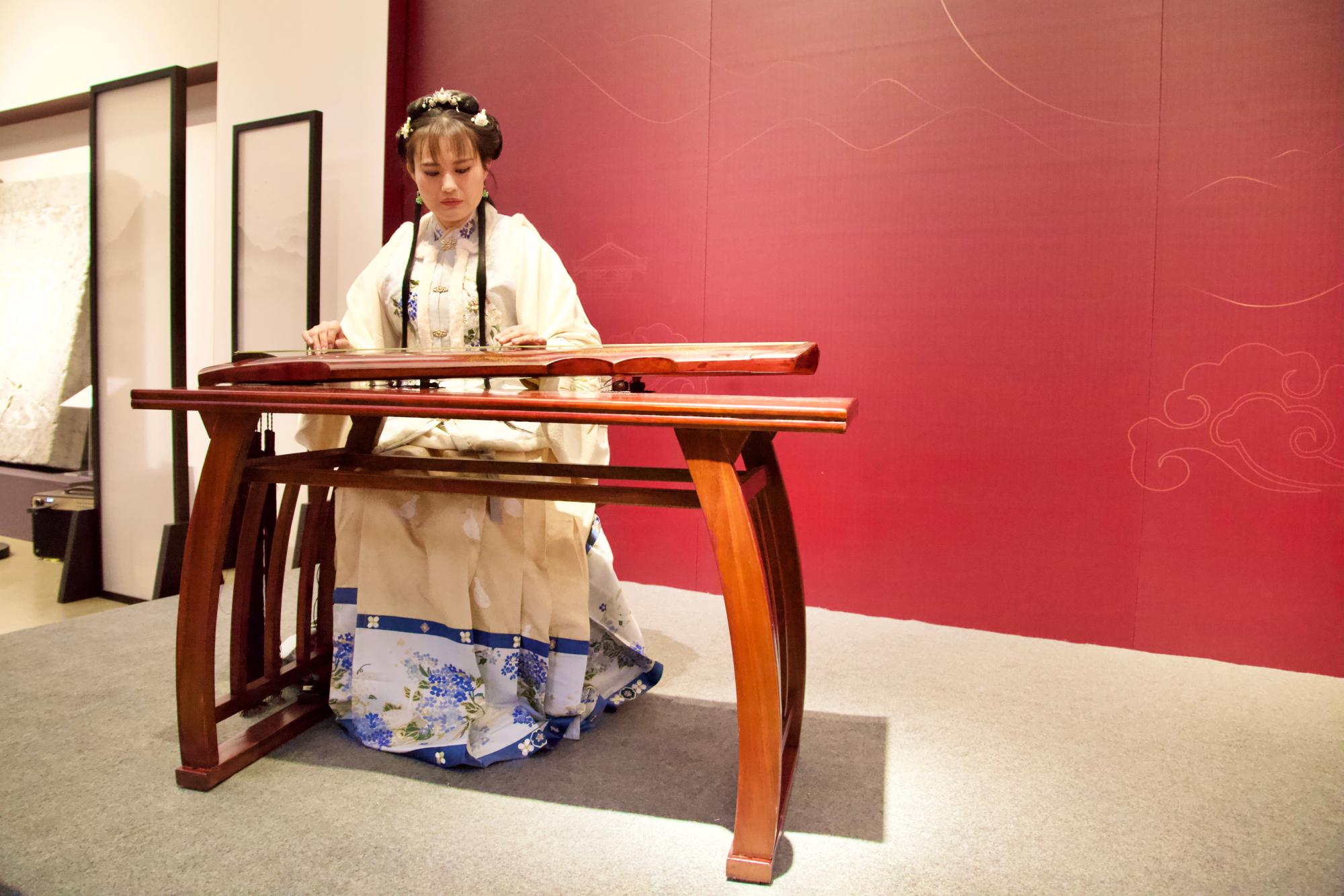 教工第一党支部党员教师毋丹作为四如馆成员,弹奏《平沙落雁》。指下生风,琴音流转,场内观众无不驻足,凝神静听。