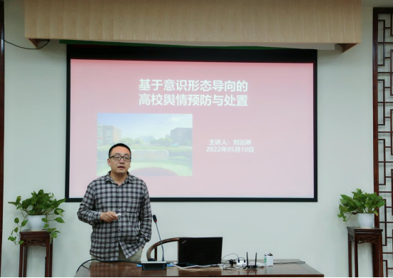 随后,校党委宣传部刘远琳老师为与会人员做《基于意识形态导向的高校舆情预防与处置》专题讲座。刘老师结合习近平总书记有关网络安全的重要讲话精神,着眼当下面临的互联网大环境、现代传媒的特点以及高校宣传思想工作的实际情况,通过自己舆情处理工作实践和案例讲解,从三个方面深入分析了当下高校面临的新形势,强调要不断筑牢网络意识形态安全防线,增强风险意识和防范意识,主动担当作为,牢牢掌握网络舆论引导工作的主动权和话语权,不断提升舆情应对处置能力。