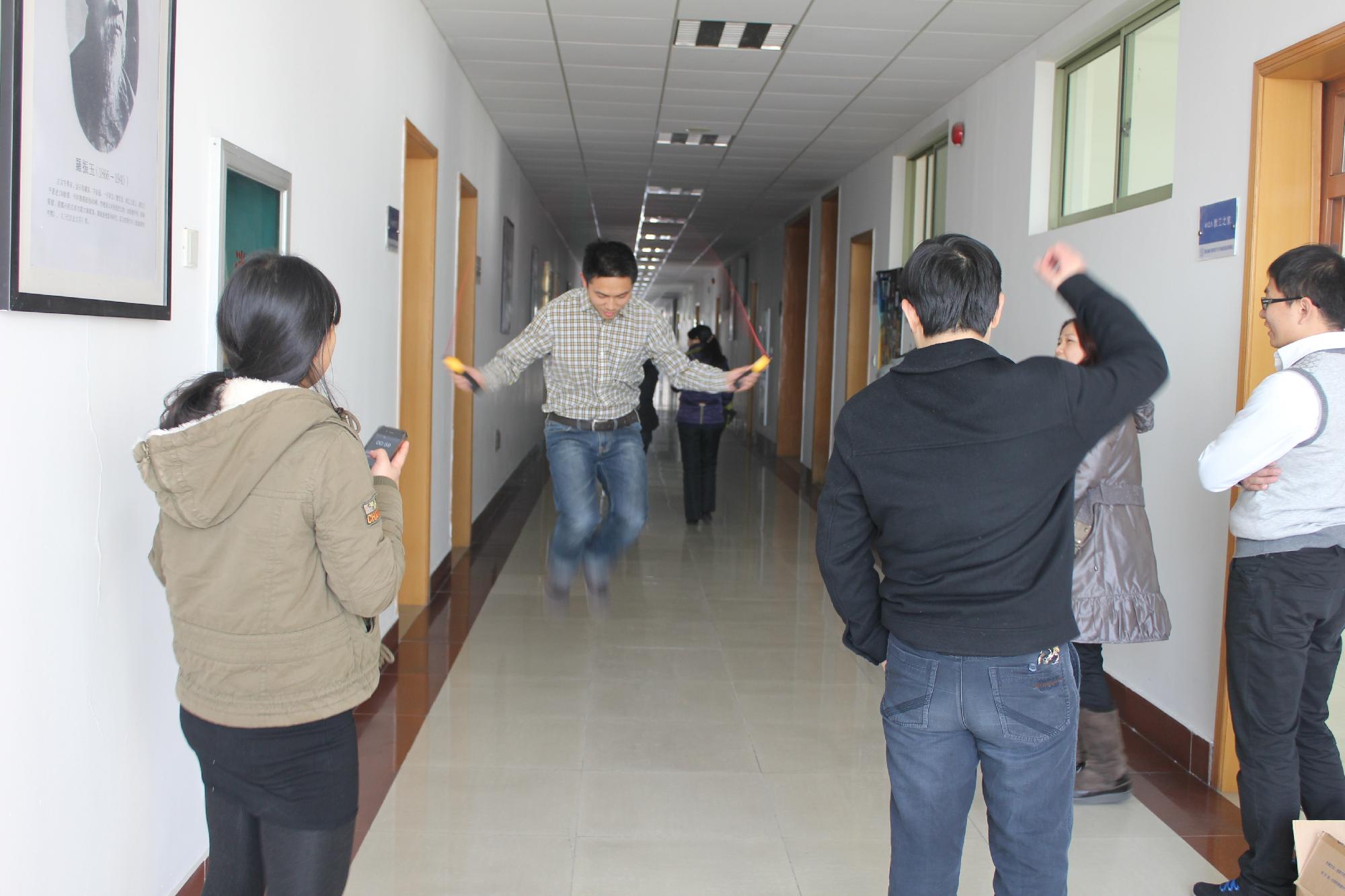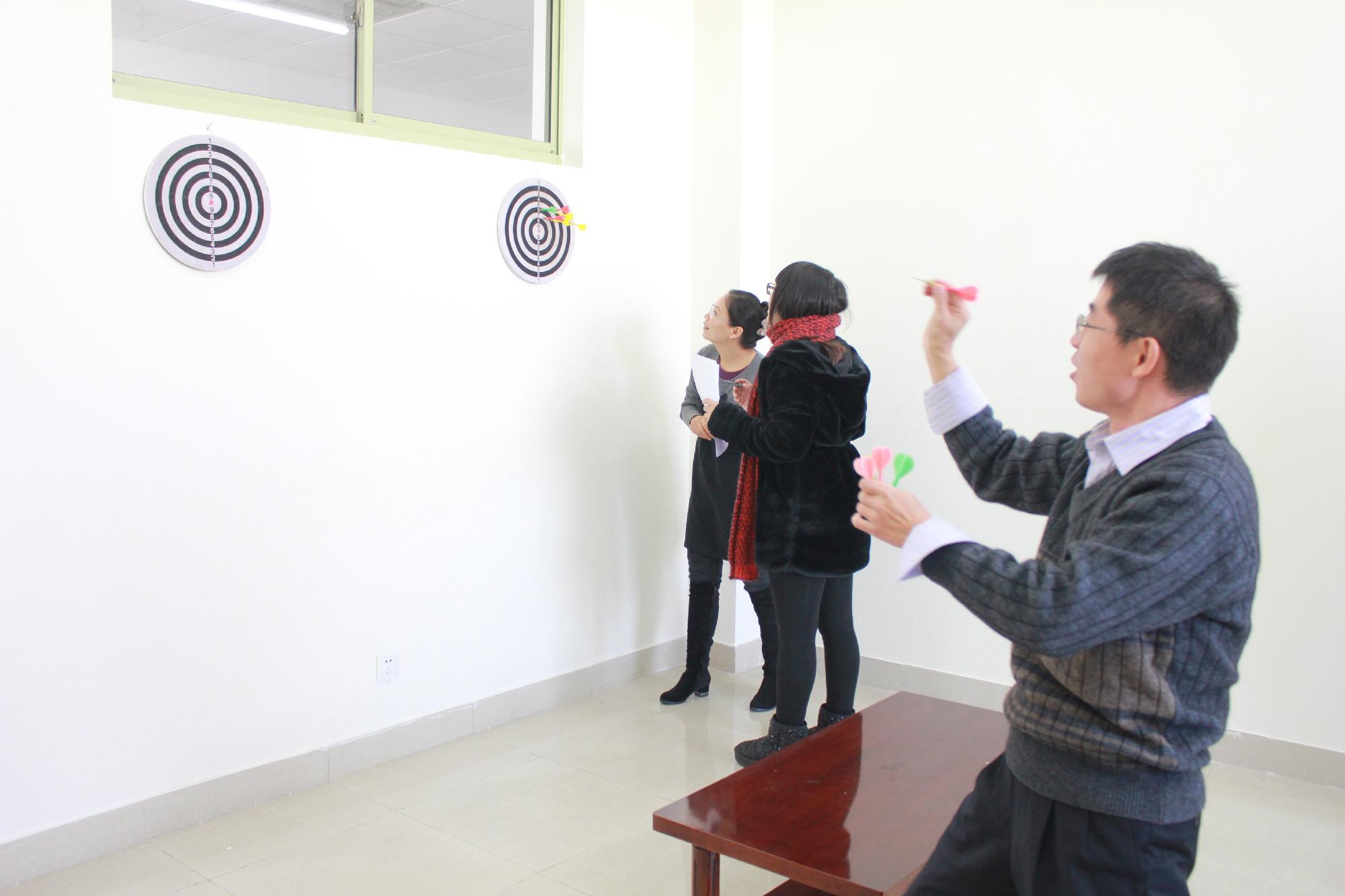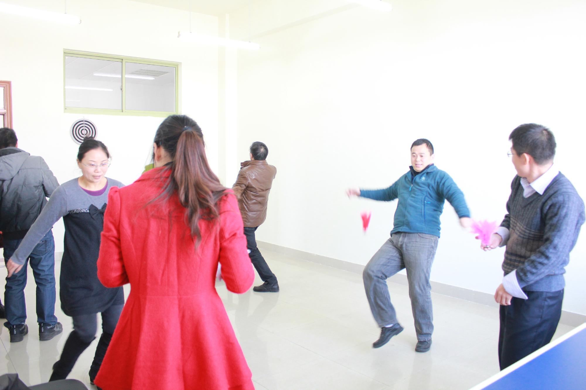 在2013年12月30日和2014年1月6日分别开展了以“单人跳绳”、“踢毽子”、“扔飞镖”三个项目为主的全体教职工健身健心活动。