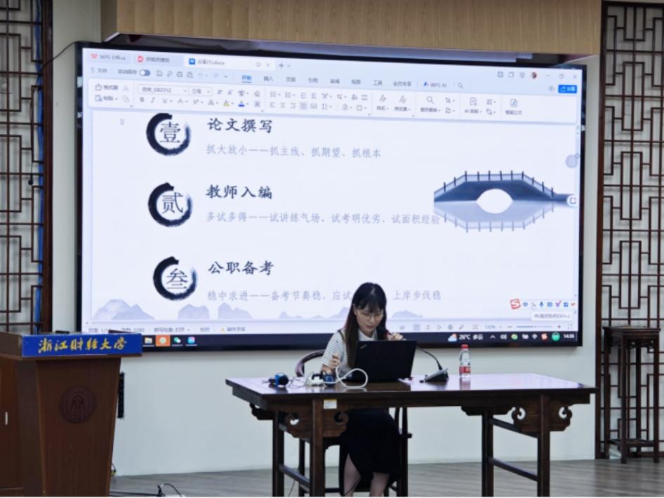 谢佳言学姐从论文撰写、教师入编和公职备考三方面介绍了自己研三时期的毕业求职经历,为同学们分享了论文写作策略、结构化面试及政策解读技巧与心理调适方法,为研究生积累应试经验、实现顺利就业提供了行之有效的方案。