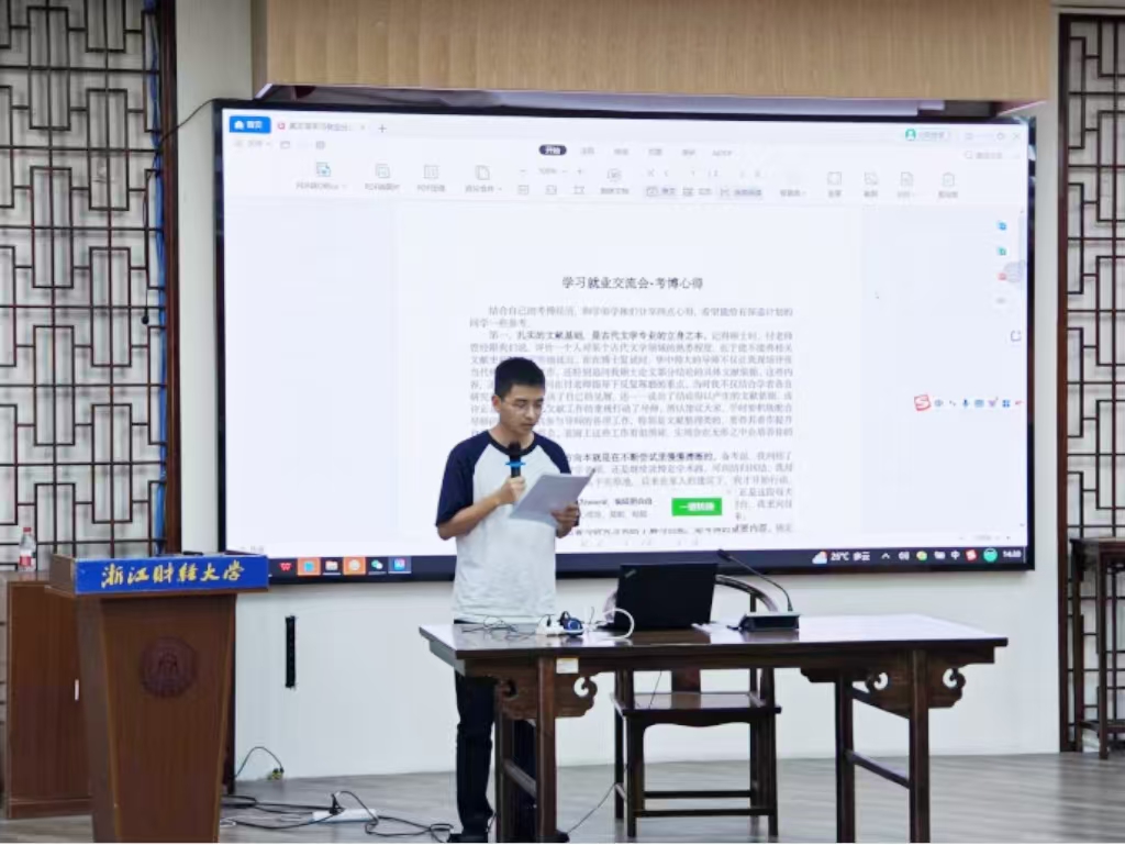 为帮助成人韩漫 在读研究生清晰地审视自身的优势和兴趣,形成明确的研究生生涯规划,2025年9月27日下午,于问津书院举行研究生学习就业经验交流会。活动由付琼教授主持,毋丹副院长致开幕词,河北大学博士生兰添、华中师范大学博士生黄文浩、浙江省象山县人民政府工作人员谢佳言三位优秀毕业生受邀分享。