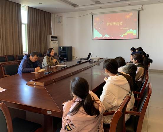 在404会议室召开迎新春座谈会,院党委书记高燕,院党委副书记吴玻,助困辅导员李洁和新生代表参加会议。会议由吴玻主持。