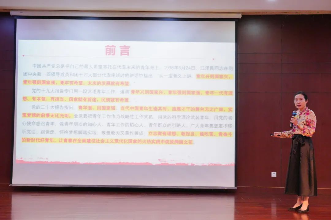 的深厚底蕴和卓越成就。同时,老师也以理想为人生动力,以责任为内化行为,以担当为时代使命,鼓舞在座的广大青年学生奋斗于当下的青春,为青春倾注全部的热爱和真情,更要在新时代的舞台上尽情施展才干、实现梦想,为国家的昌盛繁荣而接续拼搏。