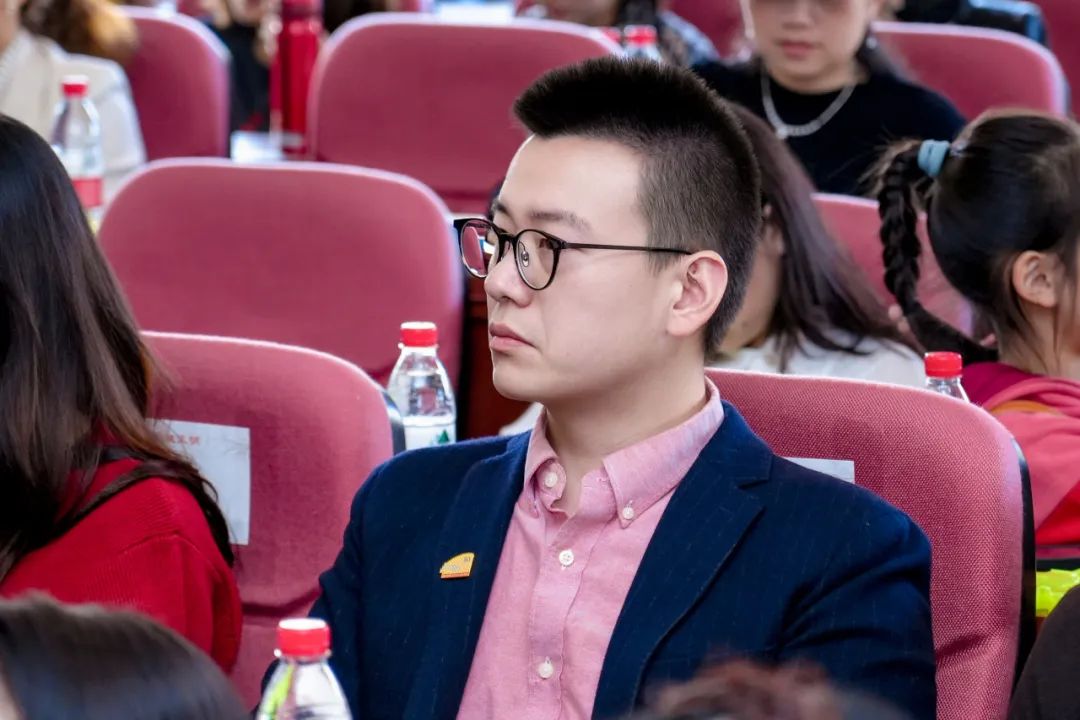 优秀校友03级广告学专业本科毕业生、07级汉语言文字学专业硕士研究生、嘉悦物产集团有限公司副总经理朱振伟分享他的职业经验。朱振伟从就业、择业、创业三个方面展开进行详细的分享。他建议同学们在实习中逐渐明白自己想要什么,做好职业规划,不要好高骛远,脚踏实地。