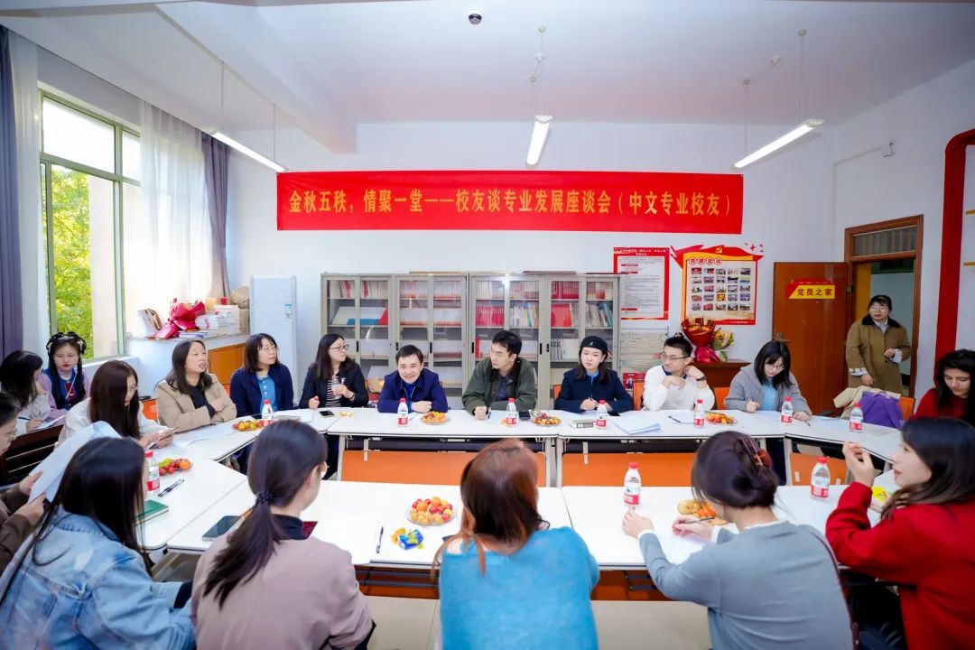 教师、校友出席。汉语言文学专业的校友们强调了中文作为基础学科的重要性,提倡多元学习,激发潜能,并强调在AI时代下思考“顺应”和“坚守”这一主题,指出贯彻人文精神、增强人文关怀,提升人文温度应当成为汉语言文学专业学生培养的重要方向,成为成人韩漫