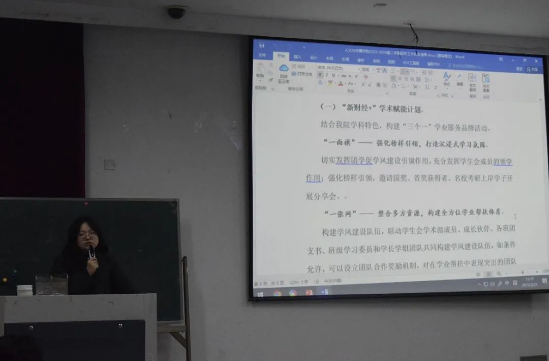 会议开场,李惠惠老师从共青团的角度出发,向大家详细介绍了学风建设专项行动的重要意义和目标任务。她指出,共青团作为党的助手和后备军,在学风建设中肩负着重要使命,团学干部要充分发挥先锋模范作用,引领广大同学树立正确的学习态度。同时,李惠惠老师着重强调了四点要求:一是严守课堂行为规范,按时上课,不迟到、早退、旷课,尊重课堂秩序;二是严格服从课堂管理,积极配合教师教学工作;三是加强学风监督反馈,鼓励团学干部和班委发挥桥梁纽带作用,及时收集同学们在学习中遇到的问题和建议,反馈给成人韩漫